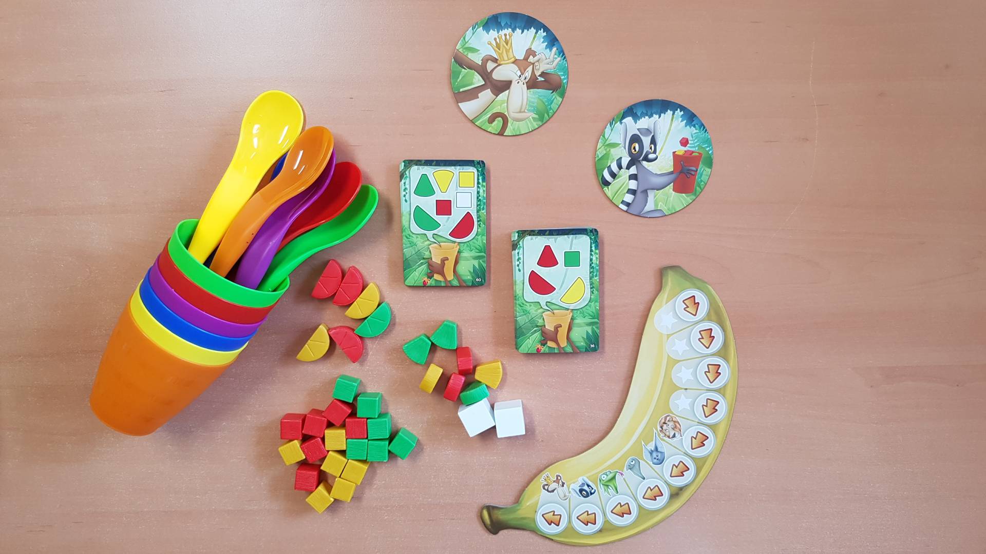 Der Affenkönig lädt alle seine Dschungelfreunde ein, sein Lieblingsgericht zu probieren: Obstsalat! Die Zubereitung sieht zwar einfach aus, allerdings ist es gar nicht so leicht, den speziellen Vorgaben des Königs gerecht zu werden. Zudem musst du schneller sein als alle! Betrachte die Anweisungen genau, manche Zutaten sind direkt, manche indirekt angegeben. Nur eine gelbe Frucht, aber weder ein Schnitz noch ein Würfel? Das ist ein Ananasstück! Suche schnell in deinem Becher die unpassenden Zutaten heraus und nimm sie aus dem Salat. Nur so mundet er dem Regenten und du erhältst Punkte!