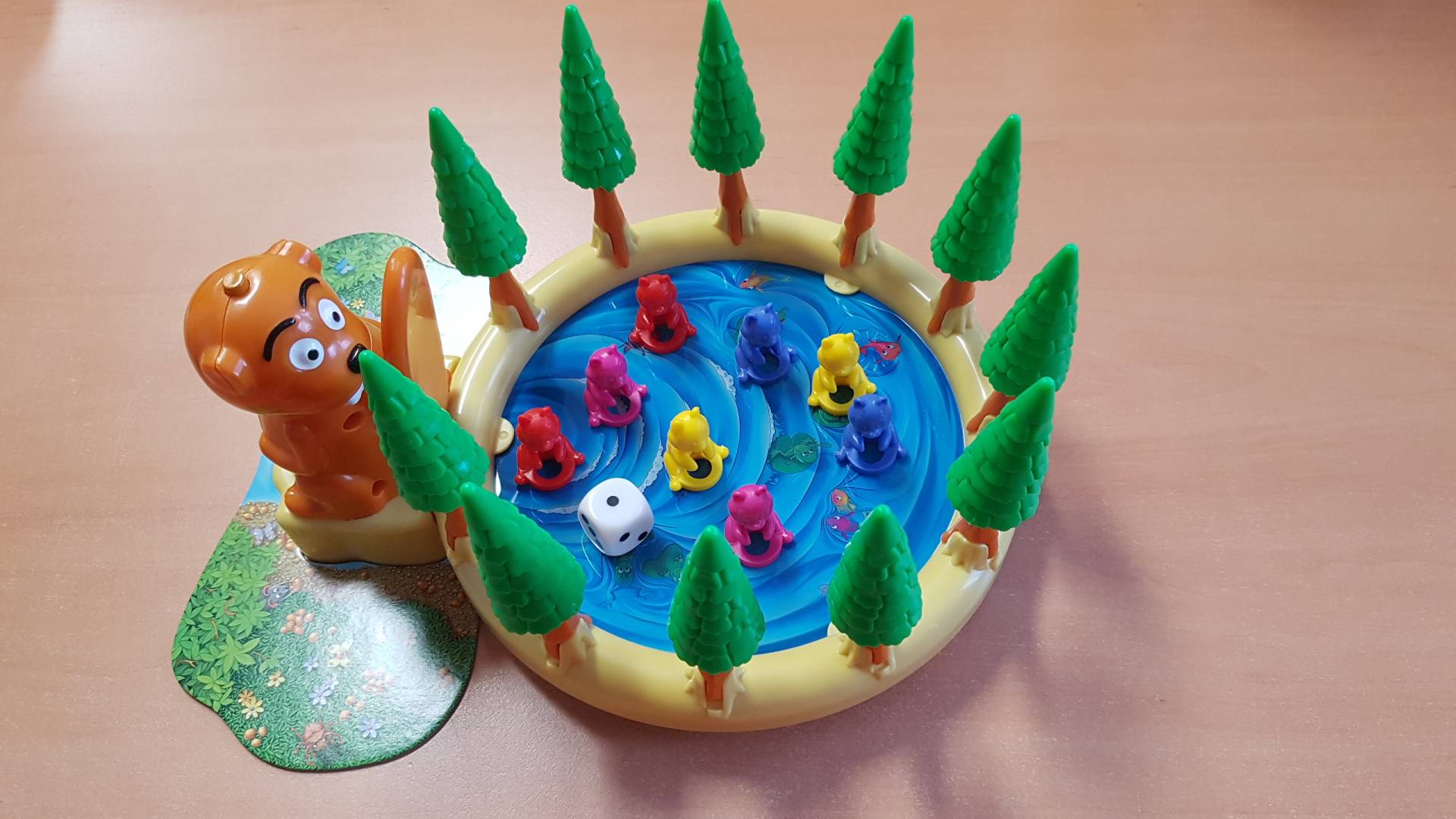 Der Biber und die Eichhörnchen spielen ihr Lieblingsspiel. Spielt Ihr mit? Einige der Bäume am See hat der Biber angenagt. Wenn die Eichhörnchen nur wüssten welche? Fröhlich springen sie von Baumwipfel zu Baumwipfel. Wer schafft es, als Erster mit seinen Eichhörnchen den See zu umrunden? Aber Achtung: Von Zeit zu Zeit schlägt der Biber plötzlich mit seinem Schwanz auf den See, löst eine Welle aus und einige angenagte Bäume geraten ins Wanken …