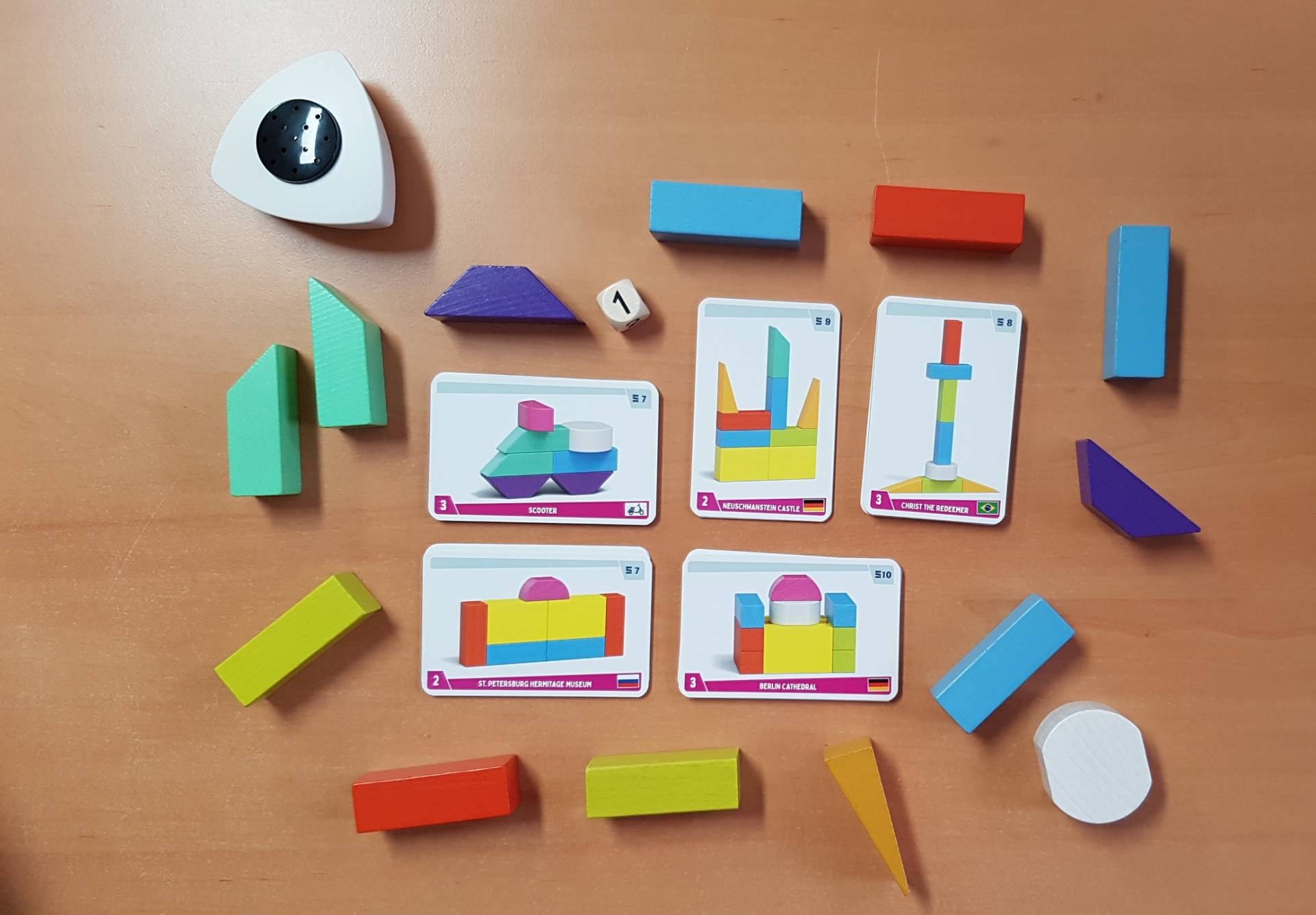 Make n Break - Around the World ist die spannende Herausforderung für große und kleine Baumeister. Nur wer schnell die bekanntesten Bauwerke der Welt bauen kann, gewinnt. Kombinationsgabe und Fingerfertigkeit entscheiden bei diesem Bauspiel-Klassiker, ob die auf den doppelseitigen Baukarten gestellten Vorgaben unter Zeitdruck erfüllt werden können. Die neuen weltweiten Bauwerk-Aufgaben haben es wirklich in sich und zeigen, dass es im neuen Make n Break sogar noch einen Tick internationaler zugeht als zuvor. Egal ob gemeinsam oder in der 2er Variante: das Bauen bleibt weiterhin abwechslungsreich! In diesem Motorikspiel lernen die Spieler mit Tempo umzugehen, blitzschnell Entscheidungen zu treffen und - je nach Spielvariante - ihre Teamfähigkeit zu beweisen.