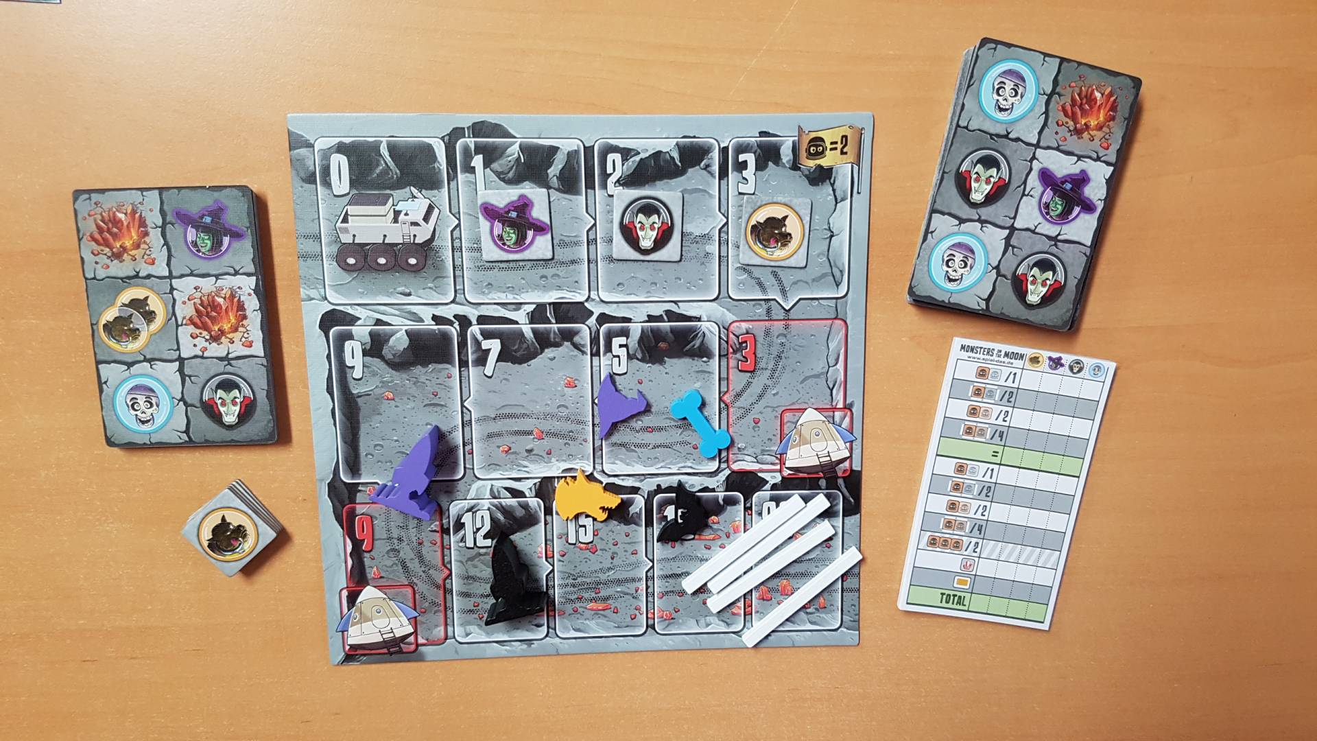 4 Monster. 1 Mond. Und alle wollen diese Kristalle! Vier verschiedene Monster reisen von der Erde ins All, um den Mond zu erobern. Natürlich gönnt keines von ihnen den anderen den Sieg! Platziert eure Monster-Karten geschickt über- und nebeneinander. Überdeckt die Köpfe der anderen Monster und gründet selbst große Kolonien. Baut ihr jetzt noch Mondmauern und setzt eure Raumschiffe ein, habt ihr den Mond so gut wie unter Kontrolle! Aber vergesst die wertvollen Mondkristalle nicht – denn nur damit kommt ihr auch wieder zurück zur Erde! Welches Monster krallt sich den Mond?!