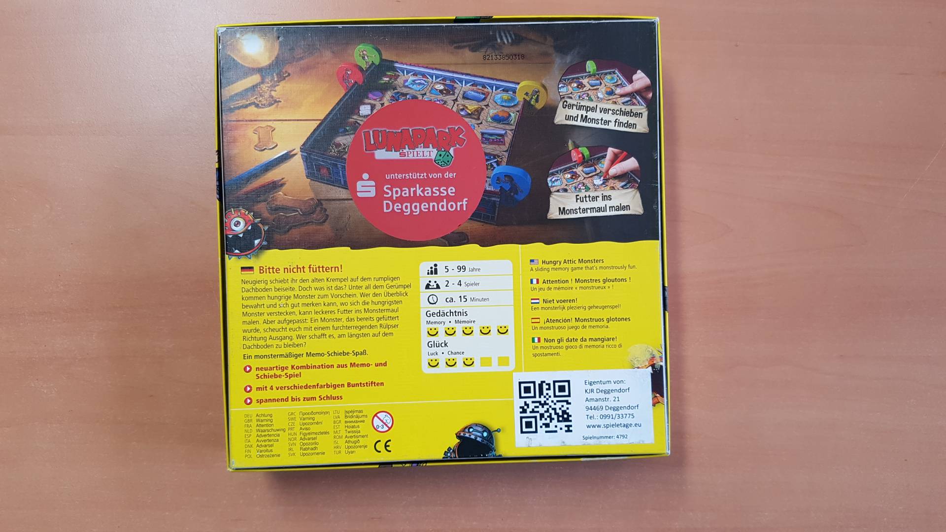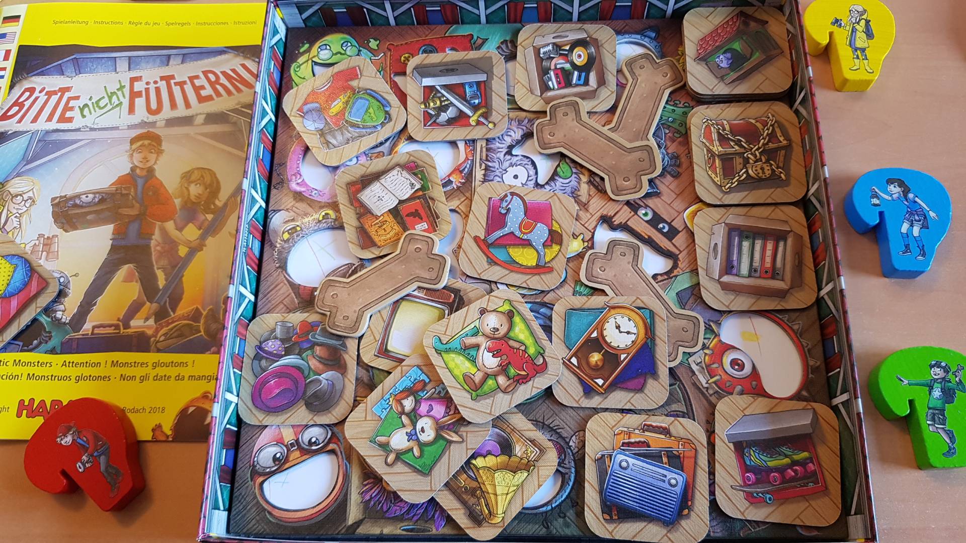 Neugierig schieben die Spieler den alten Krempel auf dem Dachboden beiseite. Doch was ist das? Unter all dem Gerümpel kommen hungrige Monster zum Vorschein. Wer den Überblick bewahrt und sich gut merken kann, wo sich die hungrigsten Monster verstecken, kann ein leckeres Futter ins Monstermaul malen. Aber aufgepasst: Ein Monster, das bereits gefüttert wurde, scheucht die Spieler mit einem Rülpser Richtung Ausgang. Wer schafft es, am längsten auf dem Dachboden zu bleiben?