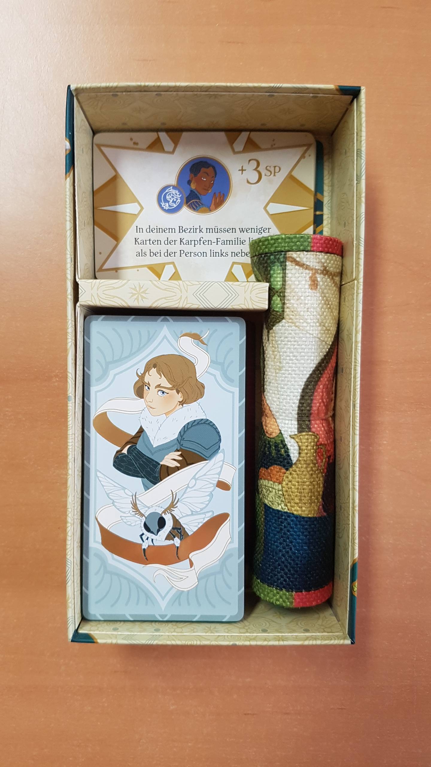 Denkbar einfache Regeln sorgen für einen schnellen Spielablauf und hohe Interaktion: In jedem Zug spielt ihr eure 3 Handkarten aus: 1 Karte in die eigene Auslage, 1 Karte in die Auslage eines Konkurrenten und 1 Karte an die Tafel der Königin. Die Karten an der Tafel entscheiden darüber, ob eine Familie in Ungnade fällt oder die Gunst der Königin erhält. In Ungnade gefallene Familien bringen dir pro Karte dieser Farbe in der eigenen Auslage 1 Minuspunkt, Familien in der Gunst der Königin jeweils 1 Punkt pro Karte dieser Farbe. Die Geheimmissionen sorgen für Unberechenbarkeit, die Sonderfähigkeiten einzelner Karten für taktischen Tiefgang. Trotzdem dauert eine Partie nur 20 Minuten, aber seid euch sicher, dass sogleich nach einer Revanche verlangt wird!
