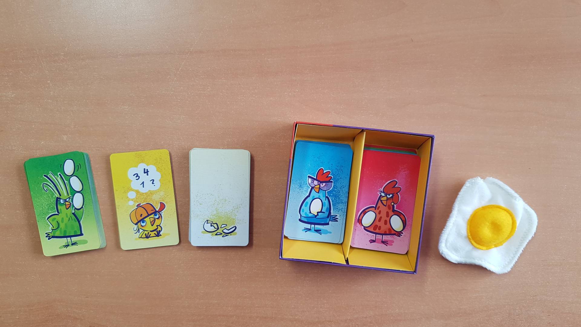 Ich, Du, Wir, Ihr oder Niemand? Wer hat nochmal die meisten Eier? Wer bei diesem temporeichen Kartenspiel den Überblick behält und sich auch vom zählenden Küken Henry nicht aus der Ruhe bringen lässt, wird am schnellsten seine Karten los! Und der Gleichstand … ist das Gelbe vom (Spiegel)-Ei!