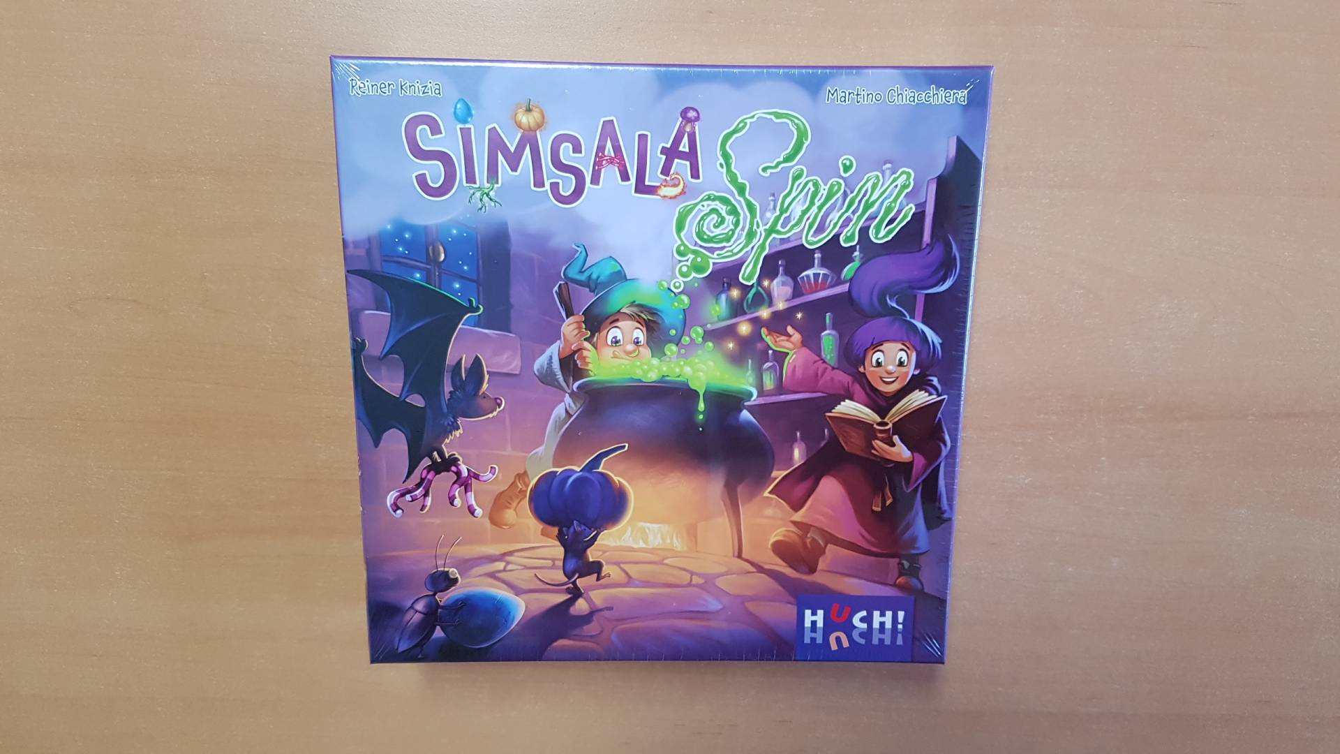 Jetzt wird gebraut! Von den Witchstone-Erfolgsautoren Reiner Knizia und Martino Chiacchiera folgt nun ein bezauberndes Kinderspiel. In Simsala Spin dürfen die kleinen Hexen und Zauberer an die Kessel! Doch bevor die besten Tränke entstehen können, braucht es die richtigen Zutaten! Die sind gut versteckt und müssen erst – passend zum Rezept – gefunden und aufgedeckt werden. Simsala Spin ist ein kooperatives Memo-Spiel mit besonderem Kniff: Die Position der Trankzutaten, die ihr sucht, verändert sich im laufenden Spiel. Wer es trotzdem schafft, alle Zutaten für ein Trank-Rezept zu finden, kann wertvolle Bonus-Effekte freischalten. Aber erst wenn alle Tränke gebraut sind, gewinnt ihr gemeinsam!