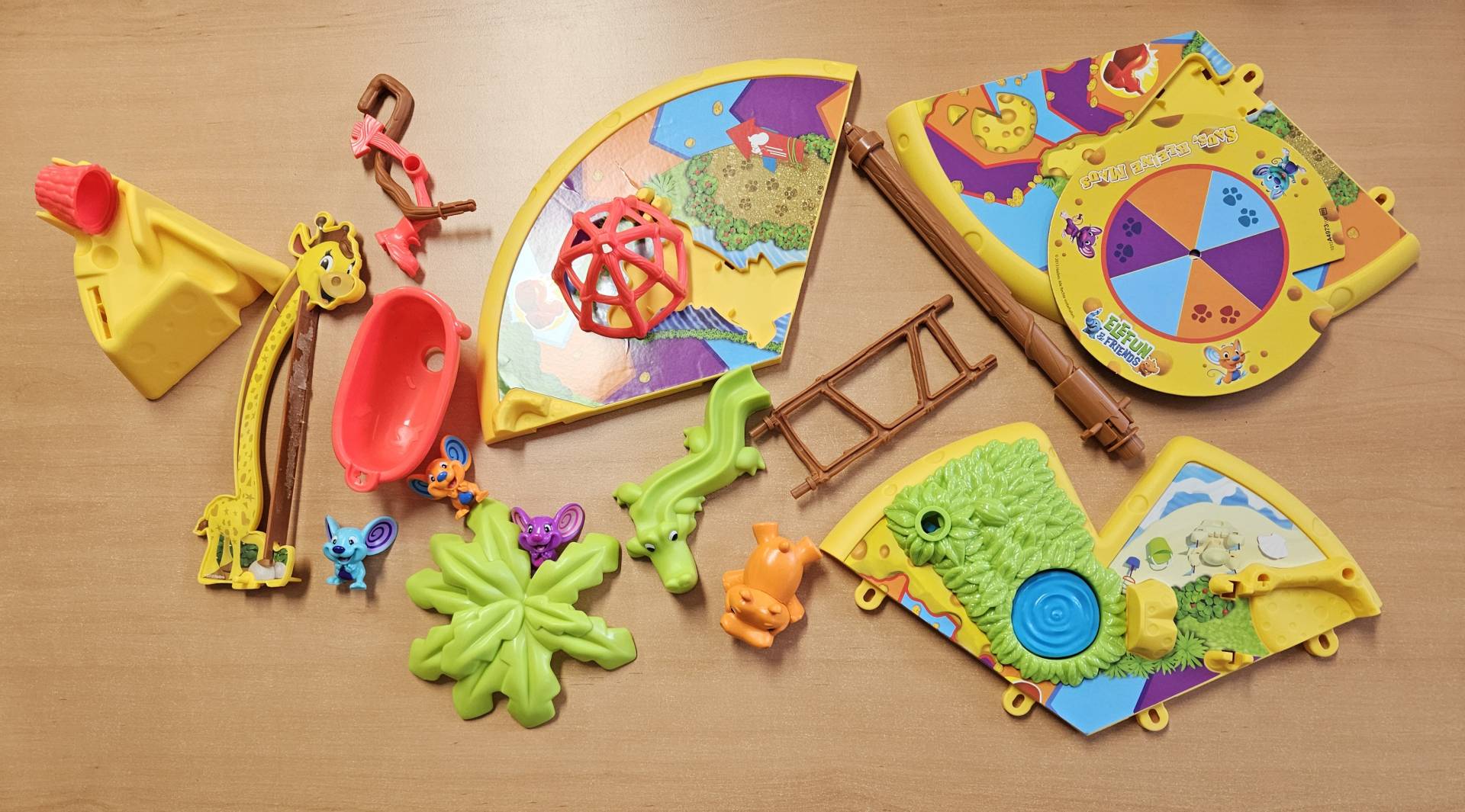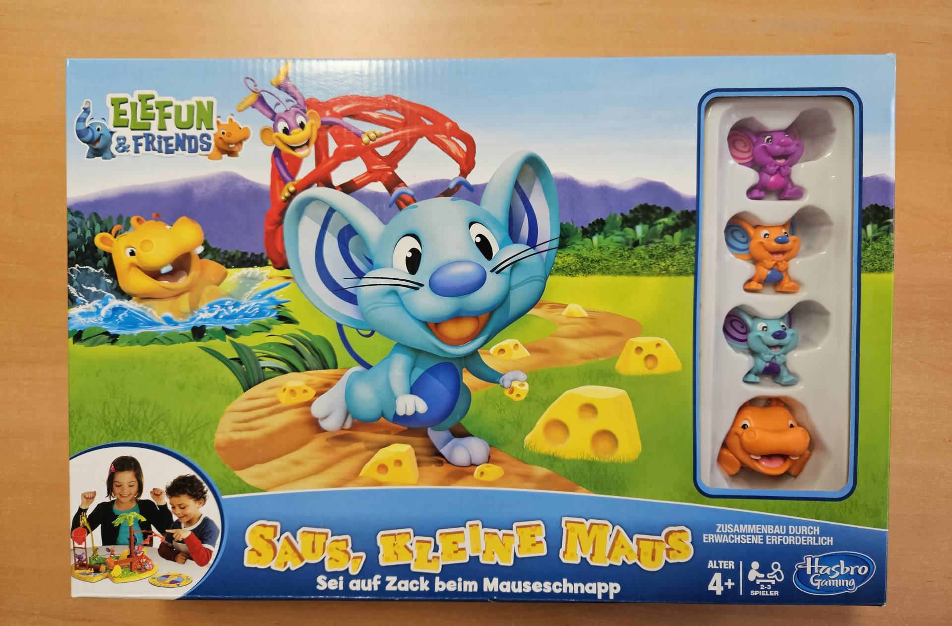Mit Saus, kleine Maus kommt Action in jedes Kinderzimmer. Die 3D-Spiellandschaft überrascht die Spieler und ihre drei süßen Mäuse-Spielfiguren immer wieder aufs Neue mit einer faszinierenden Kugel-Kettenreaktion, an deren Ende eine Mausefalle zuschnappt. Im Rennen um das beste Stück Käse gilt es, die Mitspieler in die Falle zu locken, ohne selbst geschnappt zu werden . Die Maus die als letzte gefangen wird, hat das Spiel gewonnen. Landet ein Spieler auf dem Fallen-Feld, wird über eine Murmelbahn eine Kettenreaktion in Gang gesetzt und in überraschender Folge versuchen Giraffe, Nilpferd, Elefant und Affe, die Maus zu erwischen.