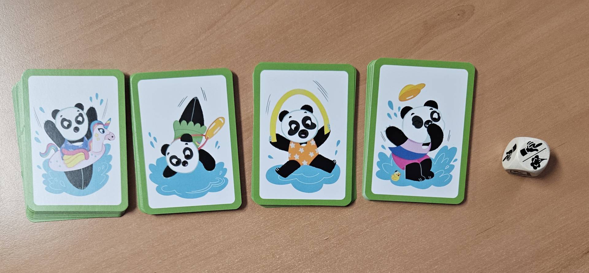 Panda-Pool-Party – das spannende und unterhaltsame Kartenspiel für Kinder ab 4 Jahren. Helft den Pandas in den kühlen Pool zu springen. Mit einem bunten Würfel und liebevoll gestalteten Karten müssen die Kinder ihre Geschicklichkeit unter Beweis stellen, um die Pandas sicher ins kühle Nass zu befördern – aber Achtung! Es sollten nie mehr als 5 gleichzeitig ins Wasser springen, sonst wird es zu eng!