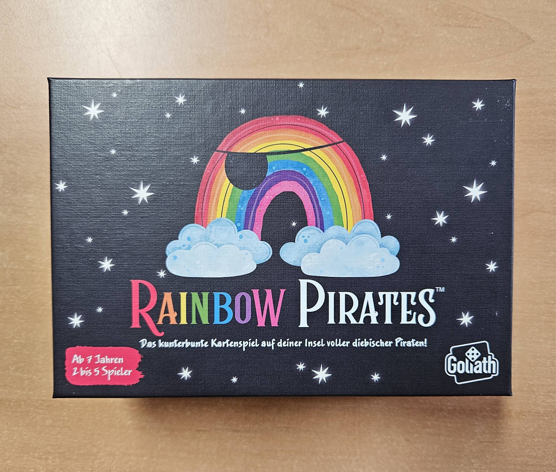 Hier geht‘s kunterbunt und räuberisch zu! Rainbow Pirates ist ein Kartenspiel für die ganze Familie, bei dem man Karten-Sets in einer Welt voller Regenbögen und diebischer Piraten zusammen- stellt. Ziel ist es, abwechselnd Regenbögen zu bauen und andere Kartengruppen auf seiner „Insel“ zu platzieren. Doch Vorsicht, alle wittern fette Beute und sammeln fleißig Schatzpunkte. Die Piraten- karten können ausgespielt werden, um Gegner anzugreifen und sich selbst Vorteile zu verschaffen!