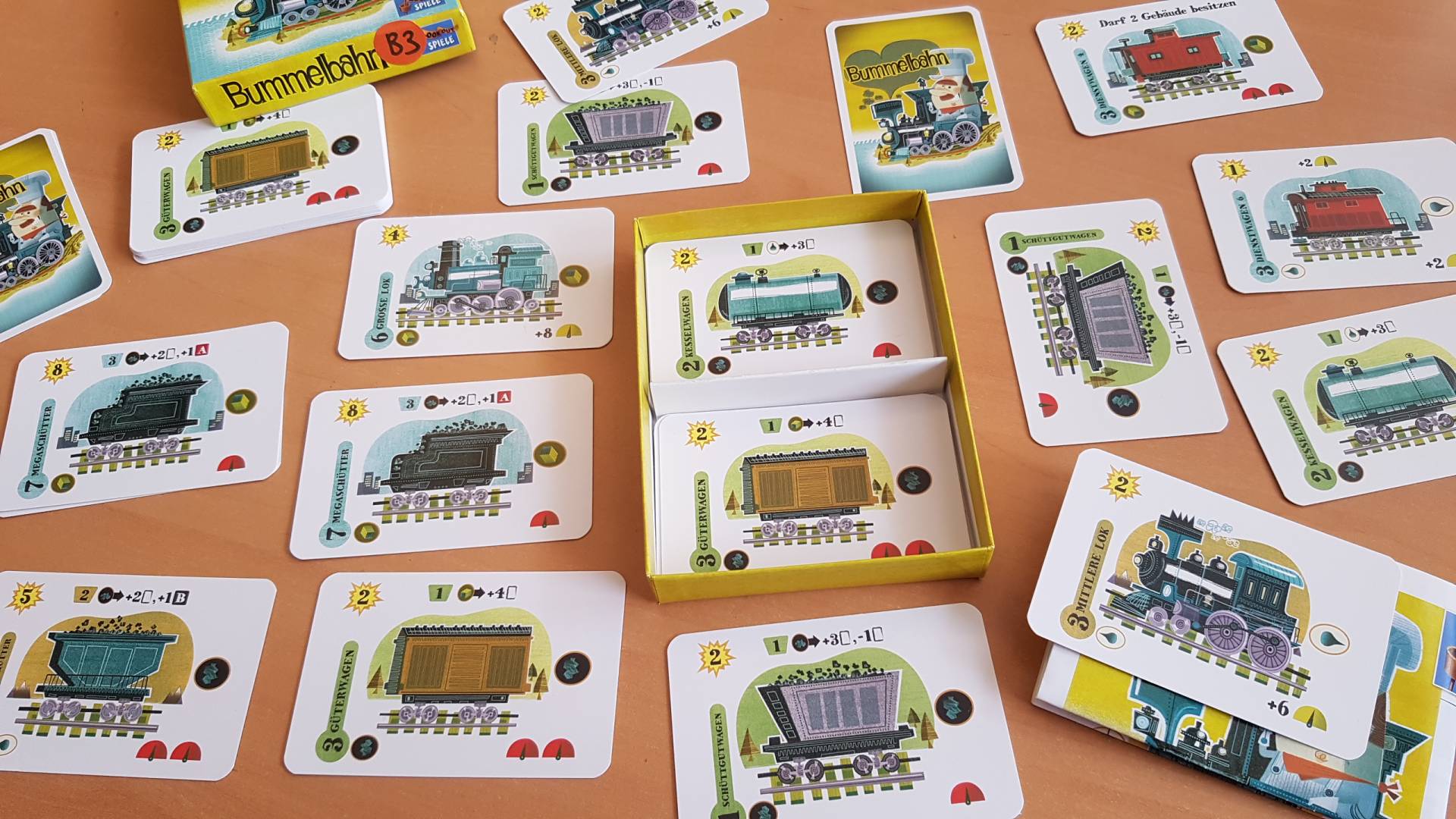 Auf einer kleinen Insel wetteifern die Spieler darum, als Lokführer den besten Zug zusammenzustellen und Waren an verschiedene Orte zu bringen. Dabei können die Spielkarten zu verschiedenen Zwecken genutzt werden. Sie können entweder als Wagen oder Gebäude den Zug verbessern, als Bezahlmittel für das Abspielen anderer Karten genutzt werden oder als Fracht auf passende Wagen geladen werden. Wer den Zug eines Mitspielers belädt, erhält sofort einen Bonus oder eine Zusatzaktion! Wer bei Spielende die meisten Punkte durch den eigenen Zug und das Erfüllen von Lieferaufträgen gesammelt hat, gewinnt !