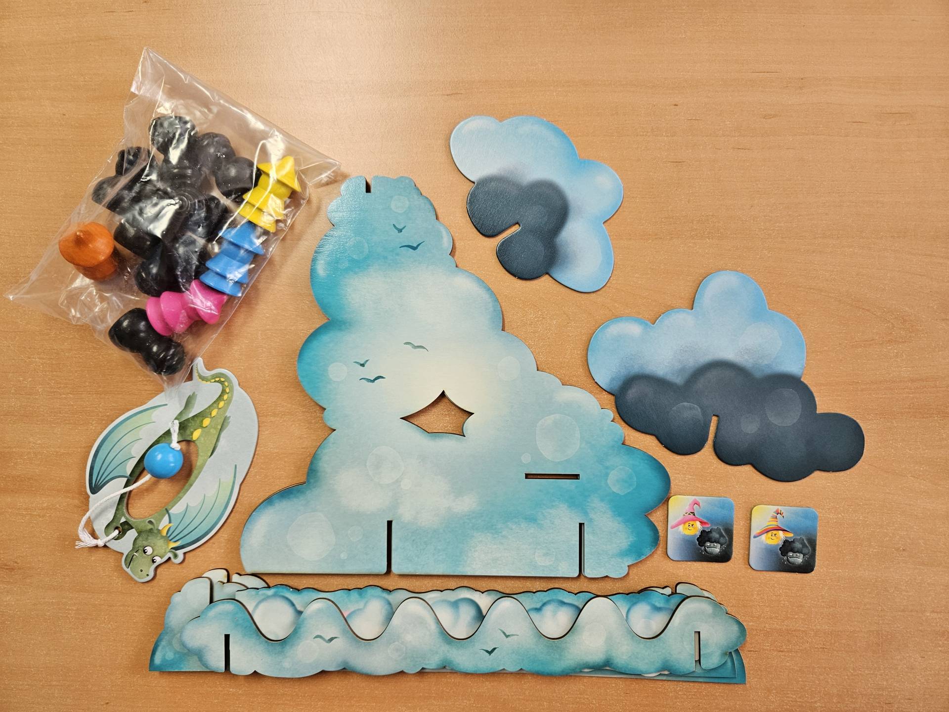 In diesem kooperativen Kinderspiel für 1 bis 5 Spieler ab 4 Jahren führt ihr die Sonnenzauberer sicher über die Wolkenbrücke, bevor die Kobolde ihr Ziel erreichen. Dabei braucht ihr Teamwork, Konzentration und eine ruhige Hand - denn der kleine Drache Wirbelwind hat eine ganz besondere Aufgabe. Nur wenn ihr geschickt zielt, wirbelt er mit seiner Pendelkugel die griesgrämigen Kobolde von der wackeligen Wolkenbrücke. Gelingt es euch, die Sonnenzauberer dabei unversehrt auf die Zielwolke zu bringen?