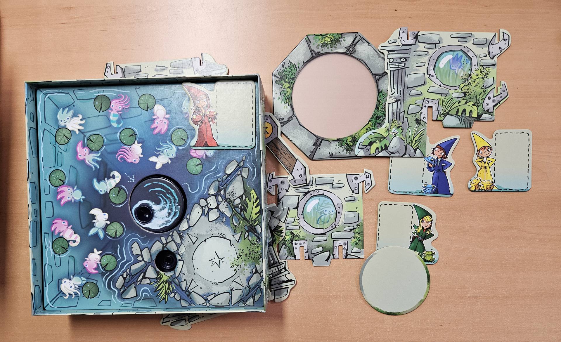 „Zeige uns dein Geheimnis, tief in deiner Finsternis!“ Für ihre bevorstehende Prüfung müssen Mila, Conrad, Vicky und Linus den geheimnisvollen Brunnen erkunden, der seit Jahrhunderten mitten im Wald steht. Wenn sie in die Tiefe schauen, ist zunächst nichts zu erkennen. Doch plötzlich sind Farben zu sehen, und je länger sie hineinschauen, erkennen sie auch Umrisse. Das müssen die verzauberten Wasserwichtel sein! Doch welche sind es genau? Entschlossen schauen sie hinein, denn wer es zuerst herausfindet, gewinnt die meisten goldenen Taler!