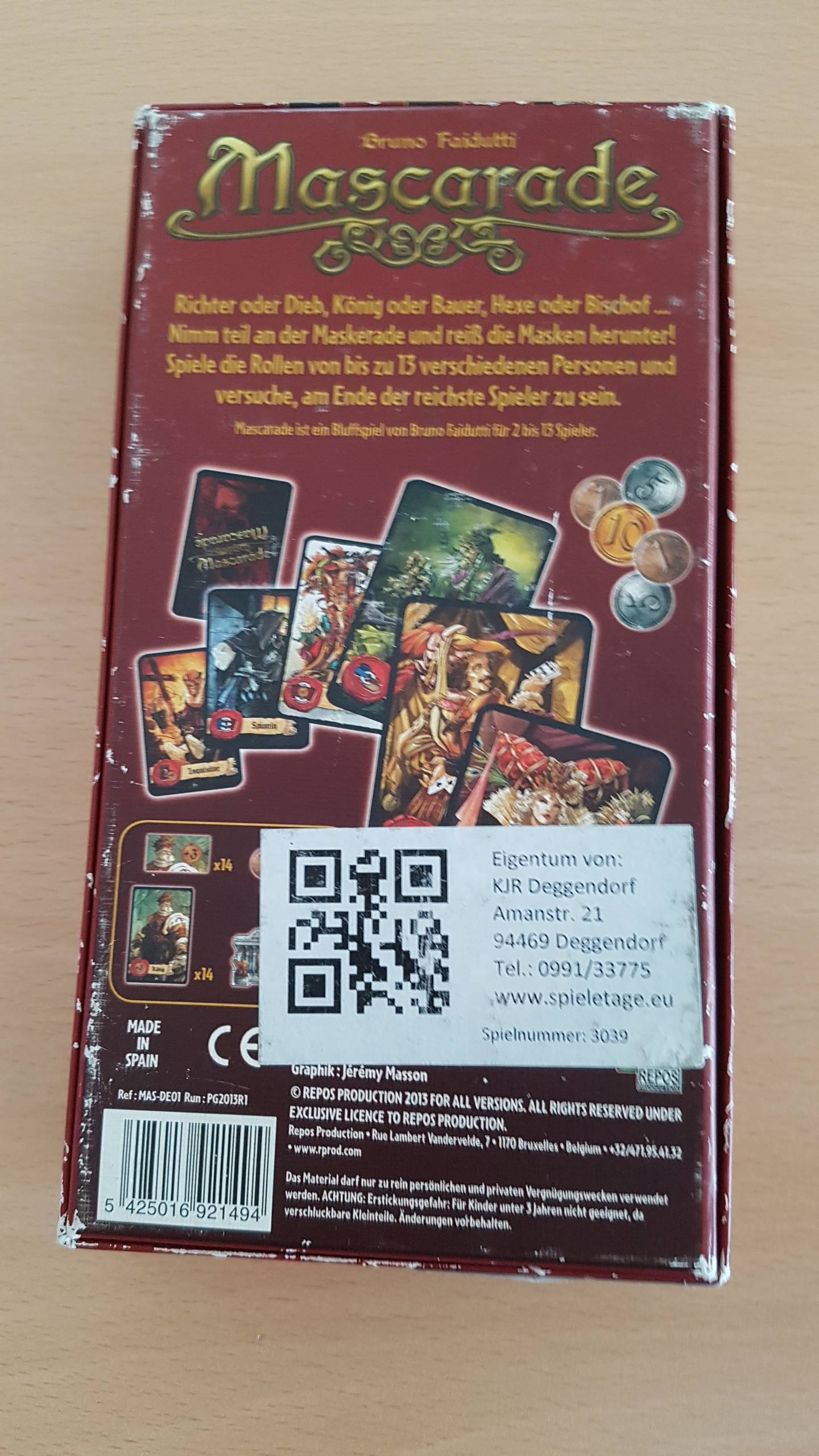 Mascarade ist ein Spiel der Täuschung von 2 bis 13 Spieler. Ziel des Spiels ist es die Befugnisse der Charaktere einsetzen, um 13 Goldmünzen. Allerdings, wenn ein Spieler bankrott ist, endet die Partie unverzüglich und gewinnt der reichste Spieler.