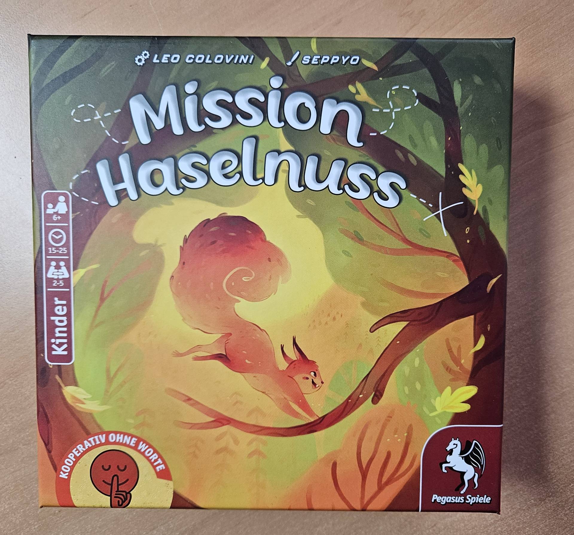 In dem kooperativen Mission Haselnuss ist es Aufgabe der Spielenden, das Eichhörnchen Eddie zurück zu seinem Nest zu führen und dabei möglichst wenige seiner Nussvorräte aufzubrauchen. In jeder Runde bewegen sie Eddie mit Haselnusskarten, die verschiedene Richtungen angeben, durch den Wald. Hierzu platzieren die Spielenden je eine Haselnusskarte verdeckt und ohne Absprache mit den anderen auf der Aktionstafel. Am Rundenende werden alle Karten von links nach rechts abgehandelt. Haben sich die Spielenden gegenseitig gut eingeschätzt, schafft Eddie es nach Hause bevor seine Haselnüsse ausgehen.