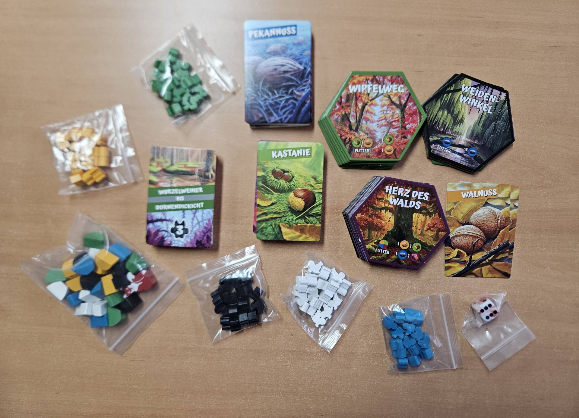 Der Spielmechanismus ist einfach: Ihr bewegt den Fuchs, ihr sammelt Nüsse, ihr rekrutiert neue Eichhörnchen für eure Eichhörnchenbande und bringt sie in Wald unter. Vielleicht auf dem Wipfelweg, im Hasenhain oder am Wurzelweiher. So verbindet ihr mit euren langsam wachsenden Territorien Orte im Wald – und das bringt am Ende Siegpunkte.