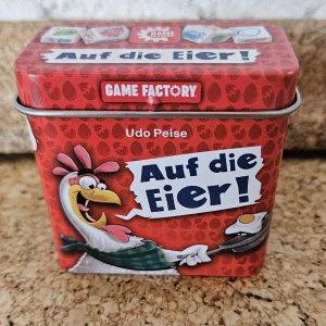 Hier geht es darum, mit neun Würfeln möglichst punkteträchtige Frühstückskombinationen zusammenzustellen. In einem Zug wird bis zu dreimal gewürfelt, dabei können Würfel beiseitegelegt und der Rest erneut geworfen werden. Punkte entstehen vor allem durch passende Sets: Ein gelbes Ei zusammen mit einer Pfanne bringt ebenso Zählbares wie blaue Eier zusammen mit einem Topf. Zusätzlich lassen sich Hühner sammeln, die als Bonus noch einmal extra Punkte einbringen, wenn die geforderte Anzahl erreicht wird.