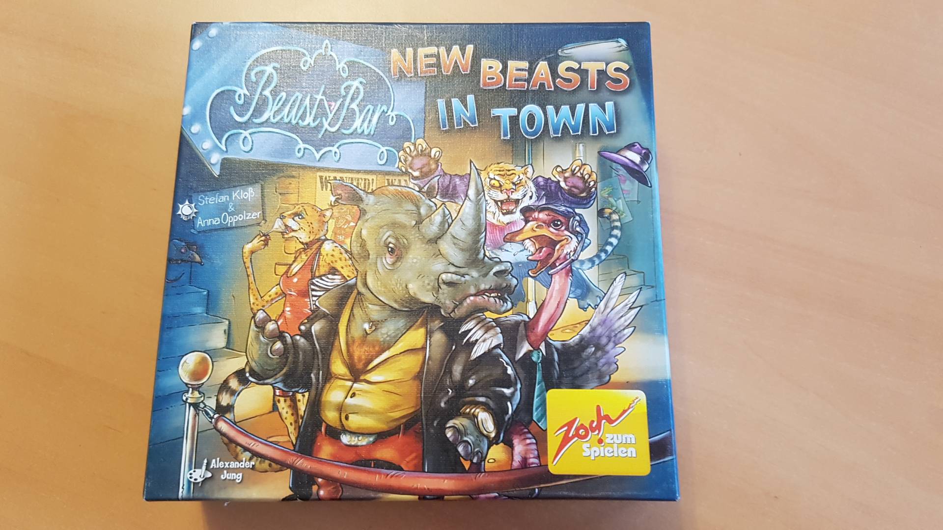 New Beasts in Town erweitert das spielerische und thematische Spektrum der Beasty Bar um ein Vielfaches. Ohne Kosten zu scheuen, wurde die High-End-Qualität der Spielkarten beibehalten. Die Illustrationen von Alexander Jung sind auch in dieser Ausgabe ein kultiger Augenschmaus.