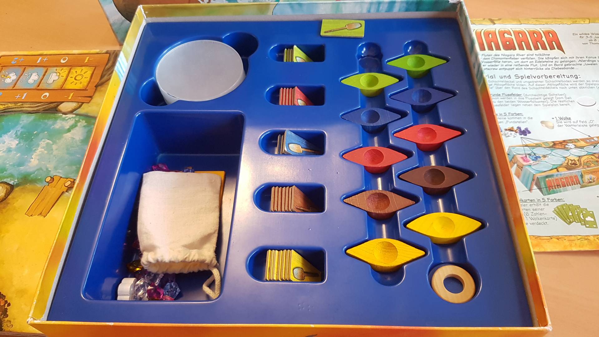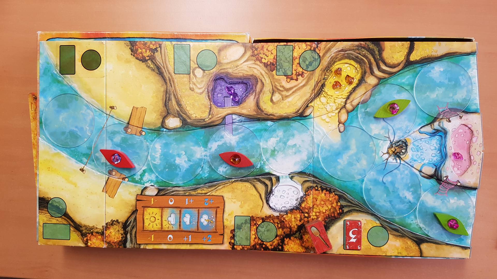 Das Flussbett bilden transparente Scheiben, auf denen die Kanus aller Spieler auf die Wasserfälle zutreiben. Mit Hilfe ihrer Paddelkarten bewegen die Spieler ihre Boote und beeinflussen zugleich die Flussgeschwindigkeit. Ziel ist es, Edelsteine an den Flussufern einzuladen und zurück an Land zu bringen. Aber auch an Bord sind die Juwelen längst nicht sicher, denn manche Bootscrew entpuppt sich hinterrücks als Diebesbande.