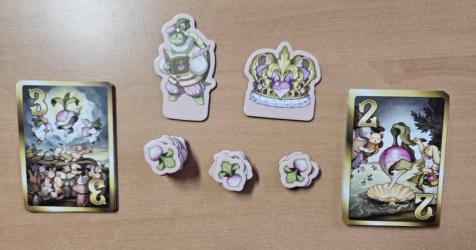 Welcome to the world of Turnip! It s time to get your farm in check and prepare for the annual Turnip-Off! In this bluffing game, 3-5 players will compete as turnip farmers trying to take the most turnips to market. Will you stay pure and plant turnips the right way, or lie your way to sweet turnip victory? Stash cards, catch fibbing players, gather turnip tokens, and play the highest total of cards to slide into victory each round. It s your sacred duty to win, and don t forget to pay the Turtle Tax!