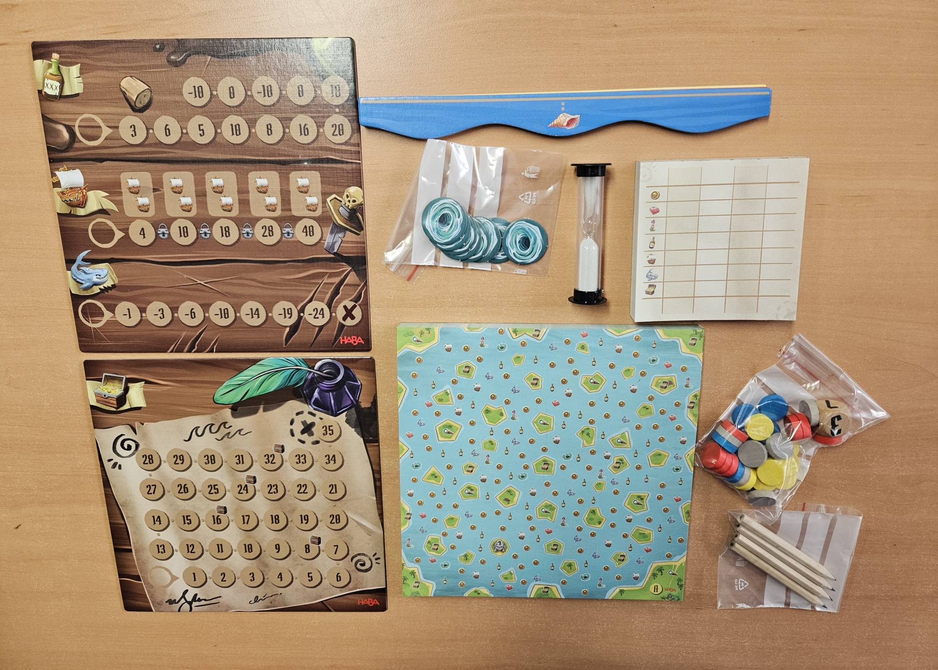 Ahoi, Piraten! Jetzt heißt es: Mit gespitzten Bleistiften clevere Routen auf den Seekarten einzeichnen, Schätze sammeln und so viel Beute wie möglich machen. Wer die meisten Punkte ergattert, gewinnt das Spiel!