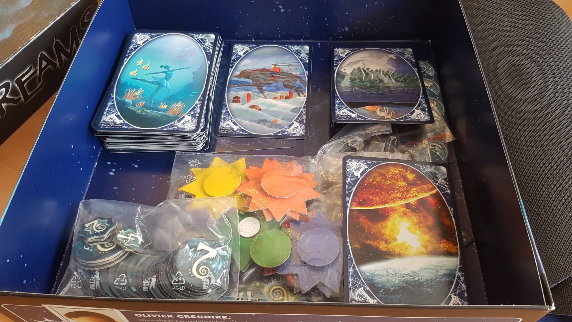 Dreams ist ein fantasiereiches Spiel, das die Wahrnehmung und Intuition der Spieler herausfordert. Dafür sorgen 72 große, von acht verschiedenen Künstlern traumhaft illustrierte Bildkarten. Vier Bilder liegen in jeder Spielrunde aus. Drei davon sind Trugbilder. Das vierte Bild, die „wahre Vision" der Götter, wird von allen Spieler mit Sternpunkten am Firmament abgebildet. Doch ein Spieler hat dabei ein gewaltiges Problem: Als Sterblicher hat er nicht die geringste Ahnung, welcher Bildvorlage er folgen soll. Für die Götter geht es darum, den Hochstapler im Dunkeln zu lassen, ohne den Verdacht der Mitspieler auf sich selbst zu ziehen. Als Sterblicher folgt man dem Ziel, die „wahre Vision" der Götter zu entschlüsseln.