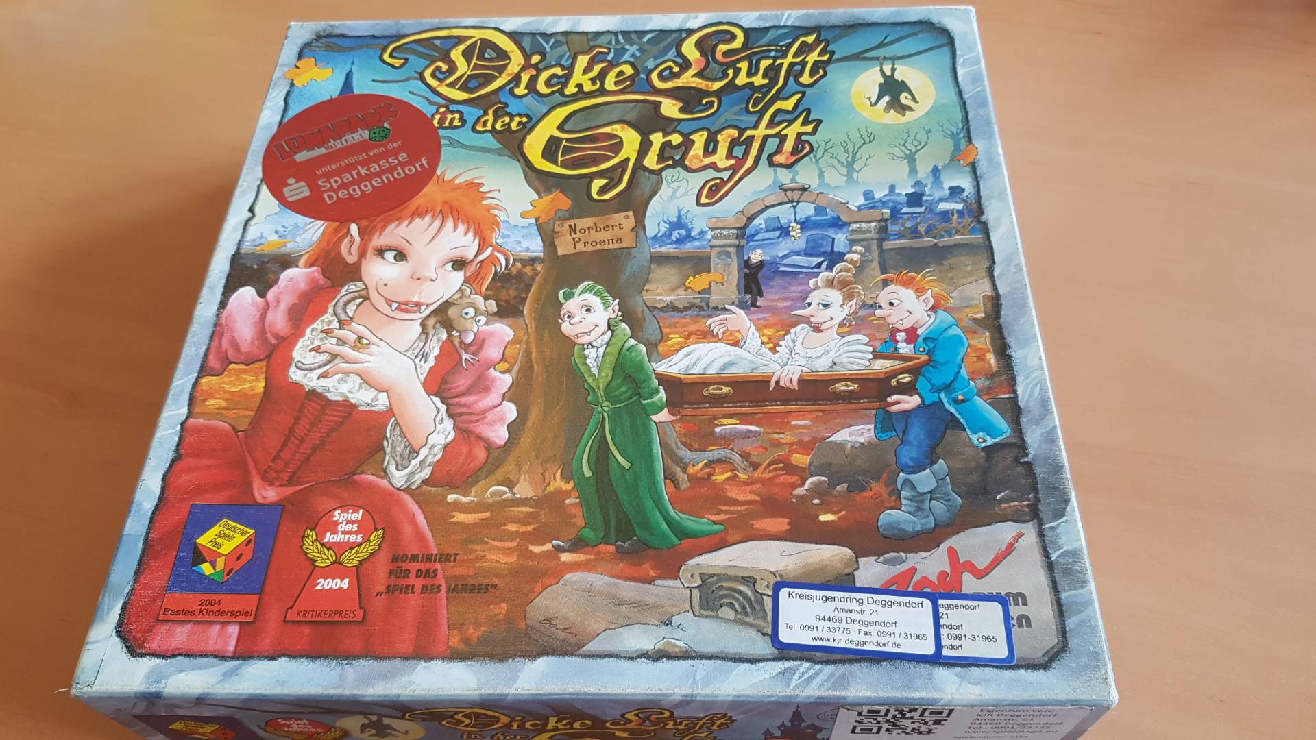 "Dicke Luft in der Gruft" ist ein verzwicktes Merkspiel für gedächtnisstarke Gruselfreunde. Bei der von Norbert Proena entwickelten und von Zoch meisterlich umgesetzten Spielidee, tummeln sich blutsaugende Vampire auf einer fast tischgroßen Spielfläche mit insgesamt 60 Grüften und Sargdeckeln. Sie wetteifern darum, bei Tagesanbruch in einem der Gräber des Friedhofs zu liegen. Zur Ruhe betten darf sich ein Vamp allerdings nur, wenn die aufgedeckte Gruft leer ist und der farbige Grabdeckel mit der Farbe des Vampirs übereinstimmt. Ist ein Grab beim Aufdecken besetzt, lässt dies das lichtscheue Gesindel kalt erschauern. Ist das Grab leer, aber die Farbe stimmt nicht, darf zur Abschreckung eine Knoblauchknolle in die Gruft gelegt werden. Gewinner des gruseligen Merkwettstreits für zwei bis sechs Kinder ab sechs Jahren ist, wer als Erster seine Vampire in den Grüften auf dem aufwändig gestalteten doppelbödigen Spielplan untergebracht hat.