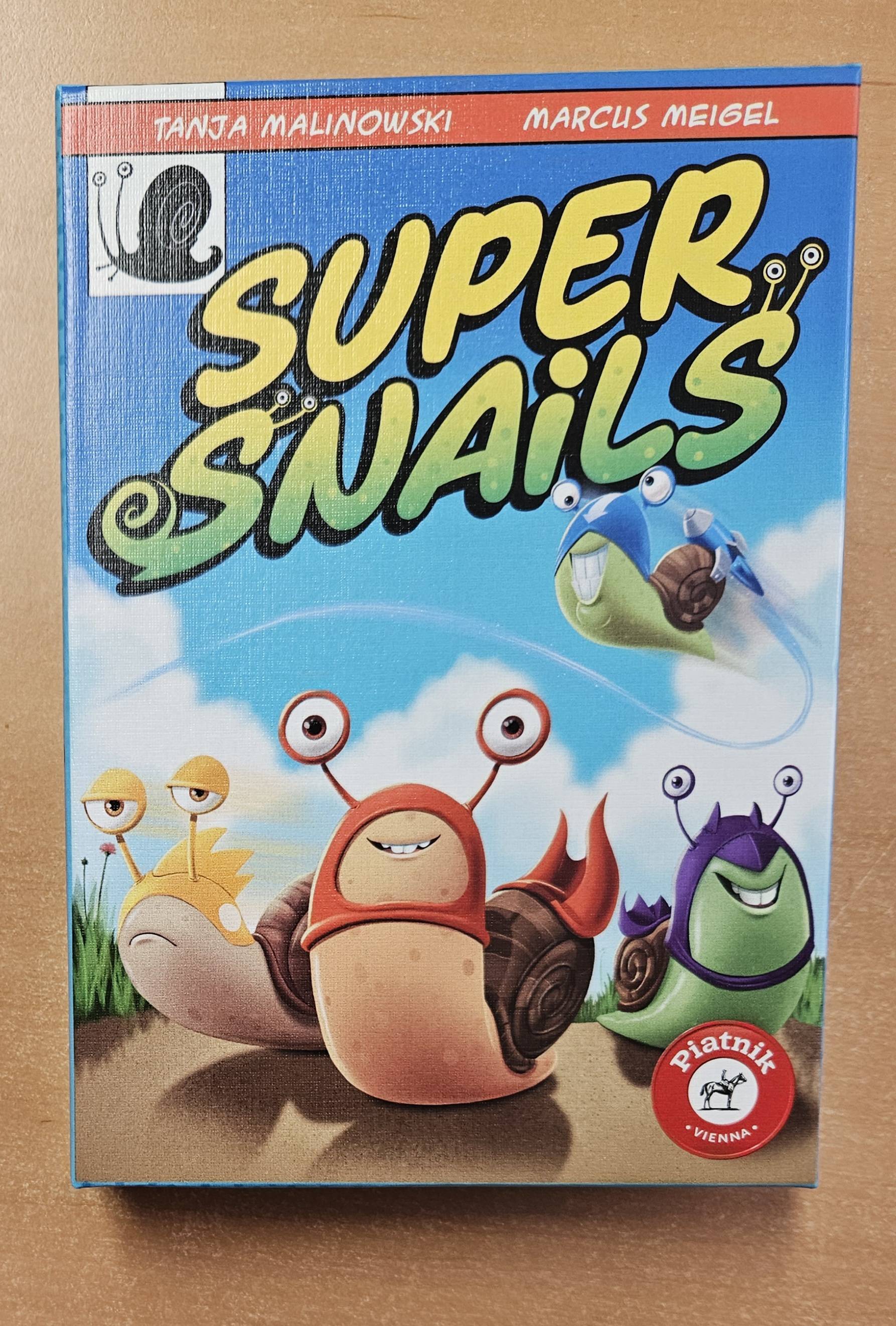 Die Super-Schnecken beweisen, dass sie auch im Kriechgang Großes leisten können. Mit ein wenig Taktik und etwas Glück geht es Schleimspur für Schleimspur Richtung Ziel. Die Basis ist ein Laufspiel, das durch die Schleimkarten und einen Wett-Mechanismus für viele Runden spannend bleibt.