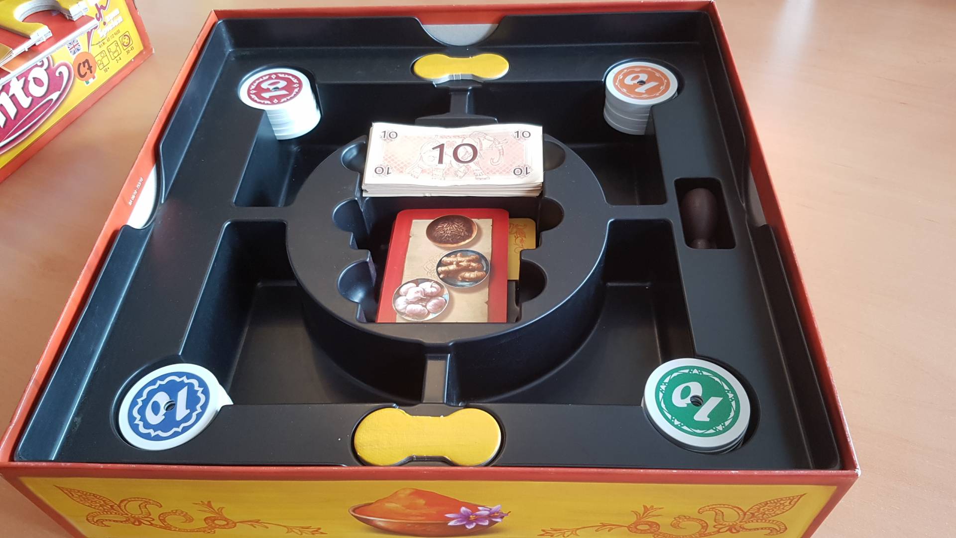 „Safranito“ ist ein außergewöhnlich raffiniertes Spiel, das wie nie zuvor Geschicklichkeit und Taktik, zu einem neuen großartigen Spielerlebnis verbindet. An einem indischen Gewürzstand feilschen die Spieler um kostbare Zutaten für ihre exquisiten Speisen. Dazu werfen sie verdeckt indische Münzen in die Schalen auf dem Spielplan. Hierbei wird geblufft und verdrängt. Wer mit Geschick die richtigen Verhältnisse in den Schalen herstellt, darf Gewürze teuer verkaufen und andere günstig erstehen. Ziel ist es, möglichst schnell die richtigen Gewürze zusammen zu bekommen. Wer als Erster mit ihnen drei Gerichte zubereitet, gewinnt.