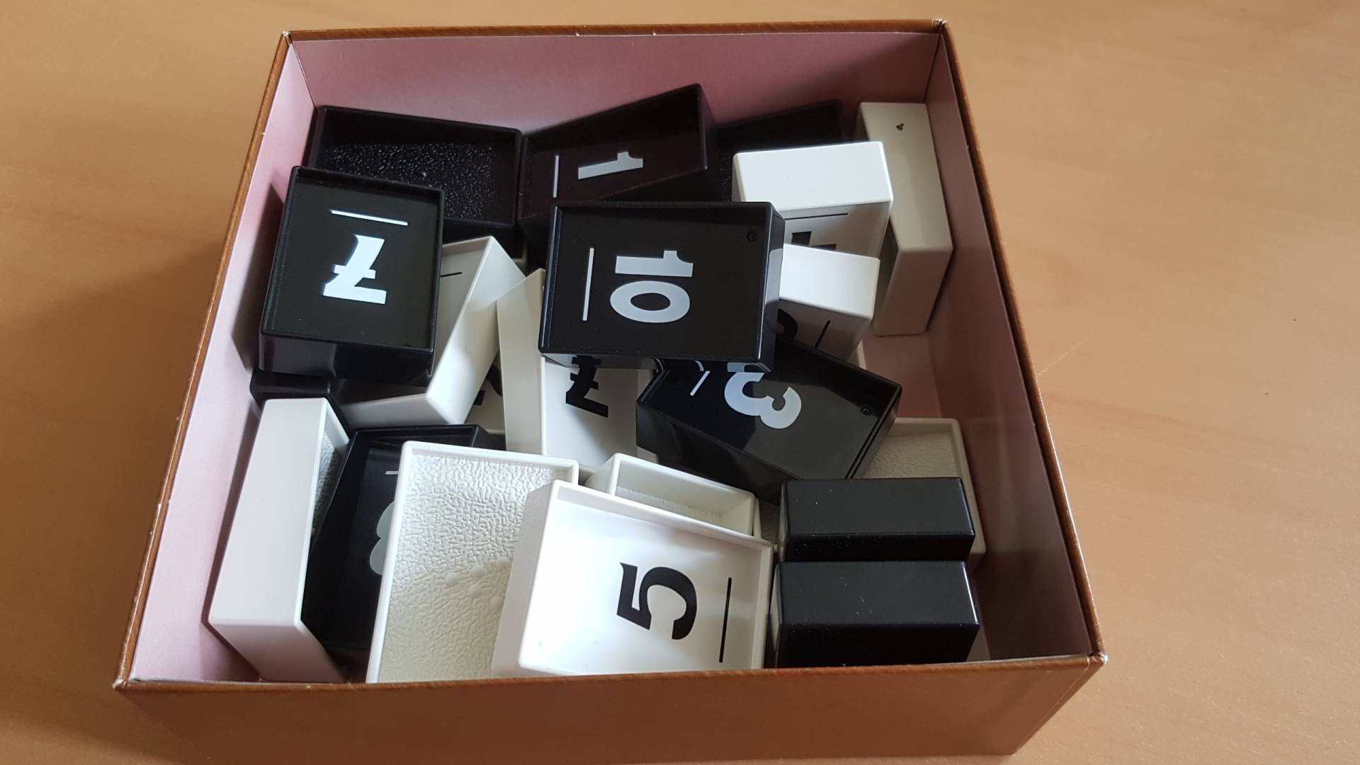 Jeder Spieler hat vor sich vier Steine mit Zahlen stehen – unsichtbar für die
