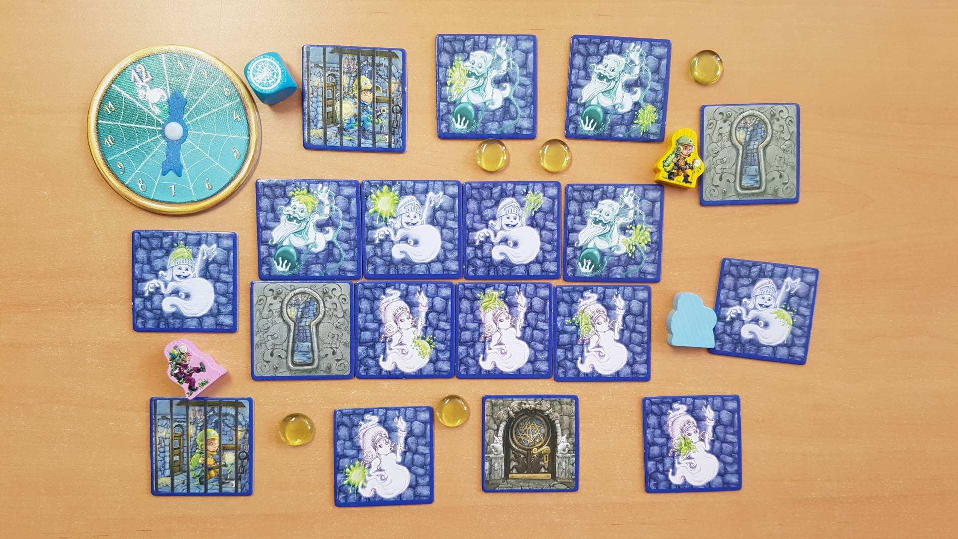 Die alte Turmuhr schlägt Mitternacht! Schnell laden die Geisterjäger grüne Glibbermunition in ihre selbst gebastelten Powerpistolen und betreten das Schloss. Schaffen sie es, die gruseligen Geister mit einer gehörigen Portion Glibber zu treffen und einzufangen bevor die Geisterstunde vorüber ist? Nur wenn sie als Team zusammenarbeiten, können sie alle Geister rechtzeitig einfangen. Dafür müssen die Geisterjäger bei diesem kooperativen Memospiel von HABA drei Karten mit demselben Geist aufdecken. Aber Vorsicht: Deckt einer eine Schlüssellochkarte auf, tappt er in die Falle und muss ab ins Verlies!