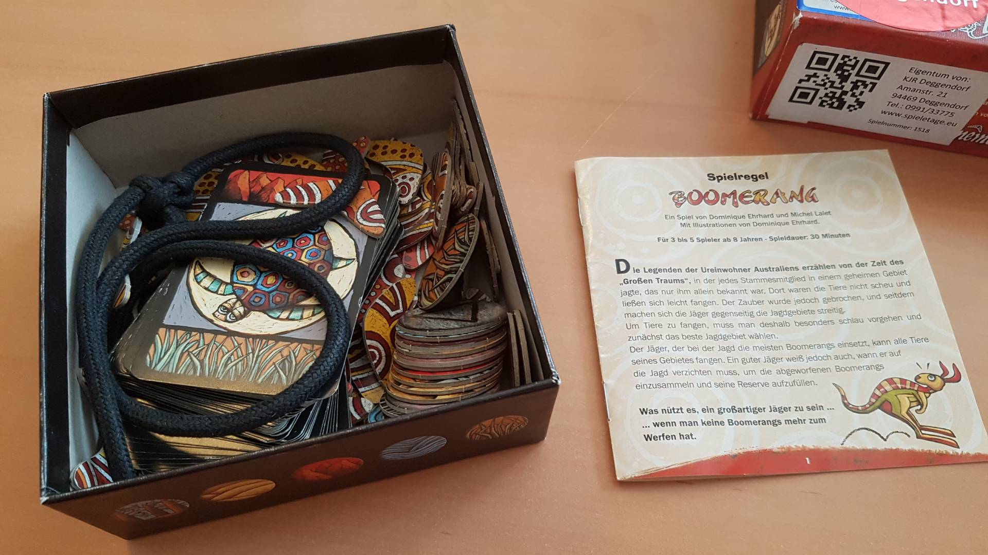 Als australischer Ureinwohner sind die Spieler auf der Jagd mi ihren Bumerangs. Sorgfältig wählen sie ihr Jagdgebiet aus und schleichen sich an die Beute heran. In diesem Familienspiel muss clever geblufft und riskant gezockt werden!