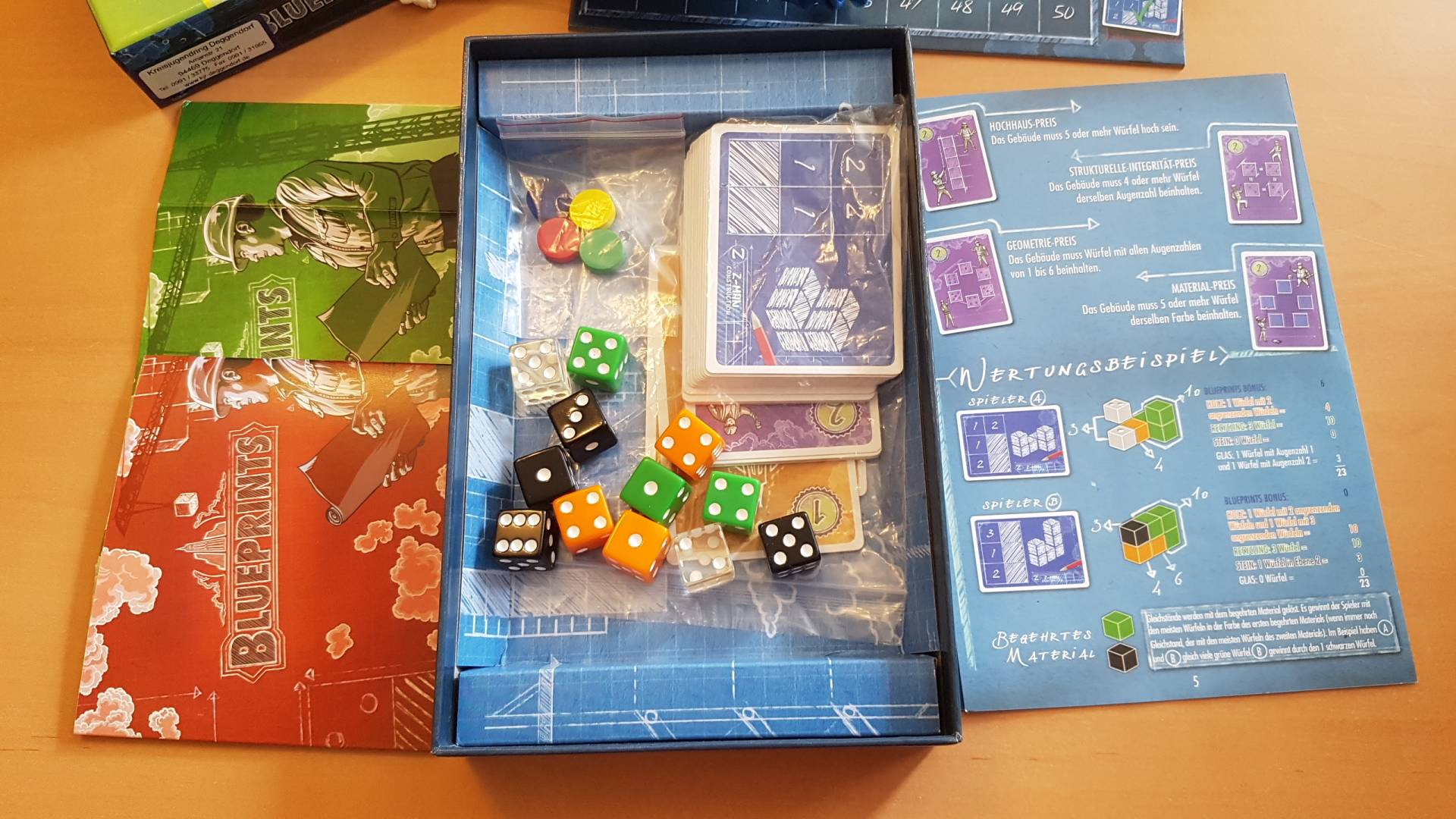 In Blueprintskonkurrieren Architekten darum, wer mit den zur Verfügung stehenden Materialien die größten architektonischen Wunderwerke schaffen kann. Kombinieren Sie Holz, Glas, Stein und recycelte Waren, um ein Gebäude zu bauen, um das Sie Ihre Rivalen beneiden. Die besten Konstruktionen erhalten in jeder der drei Runden des Spiels Auszeichnungen und Preise, und diese wertvollen Punkte bestimmen, wer am Ende gewinnt.