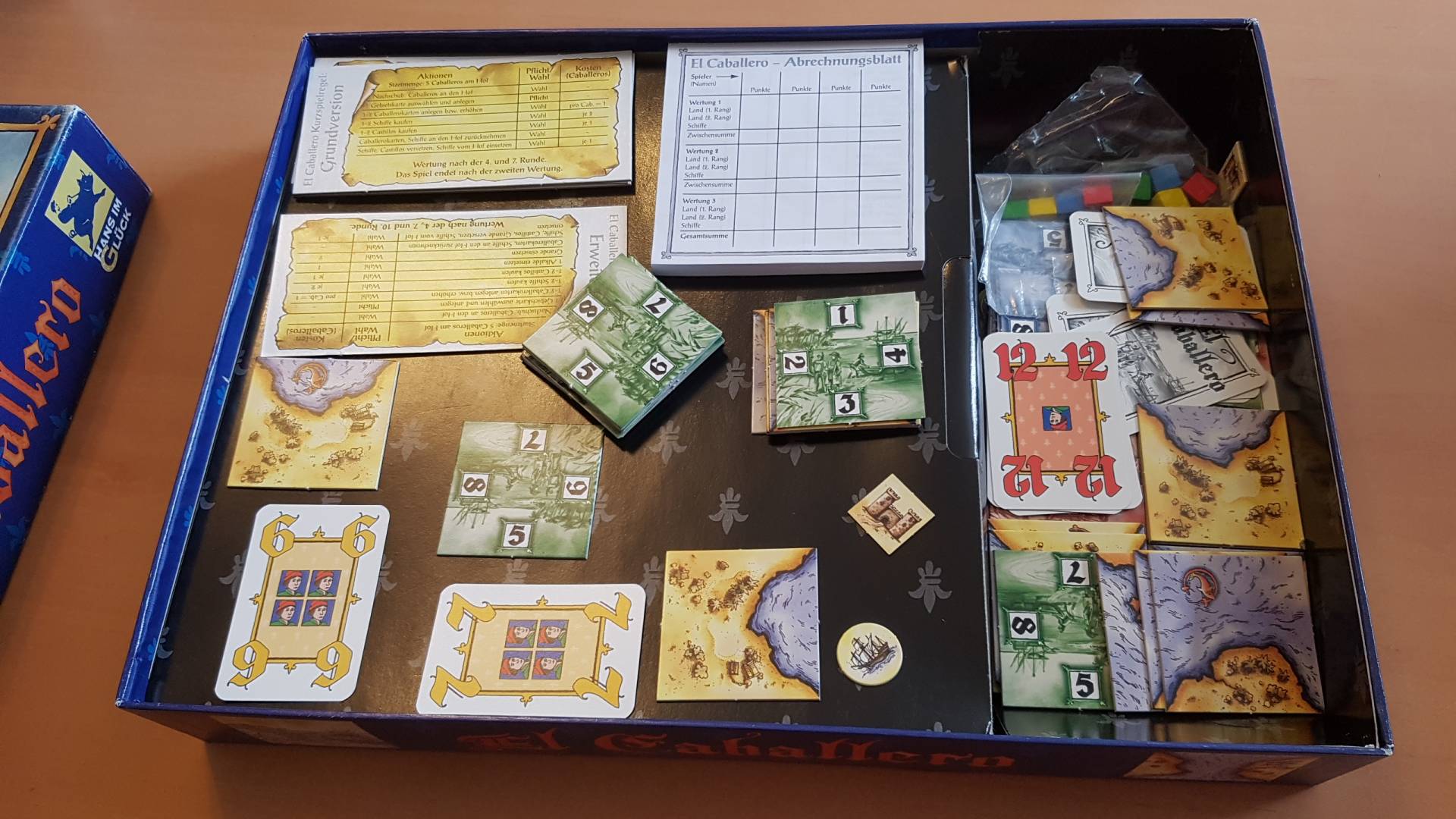 Zunächst liegt alles im Verborgenen; nur ein einzelnes Kärtchen, das ein wenig von der Region zeigt, die die zwei bis vier Spieler zu entdecken gedenken, ist zu sehen. Um die Spielreihenfolge in jeder der sieben bis zehn Runden zu bestimmen, spielt jeder Spieler eine seiner dreizehn Machtkarten aus. Je höher deren Ziffer, desto eher darf man seinen Zug ausführen, doch umso weniger Caballeros erhält man dafür. Diese benötigt man aber, um Land in Besitz zu nehmen, um Schiffe zu kaufen oder um Castillos zu bauen. Doch ehe man daran geht, seine Macht auszudehnen, wird das Territorium vergrößert, denn jeder Spieler muss ein Gebietskärtchen an die bereits vorhandenen anlegen. Dabei sind vor allem jene mit einem Goldvorkommen besonders interessant, da sie in jeder Wertung doppelt zählen. Gewertet werden alle Landregionen sowie alle Schiffe.