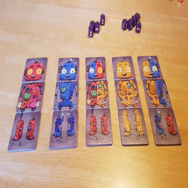 Das Fließband befördert Roboterköpfe, Beine und Rumpfkörper in drei Farben. Auf diesen Komponenten platzieren die Spieler Würfel. Sobald ein Roboteil das Band verlässt, purzeln auch die darauf abgelegten Würfel herunter. So würfelt das Fließband aus, welchem Spieler das betreffende Körperteil eines Roboters zusteht. Vom Rand des Bandes lassen sich mit weiteren Würfeln Veränderungen auf dem Band vornehmen, um sich Vorteile in der „Produktionskette" zu verschaffen. Wer aus den „vom Band gewürfelten" Robo-Körperteilen möglichst viele Roboter montiert und sie dabei möglichst aus einer einheitlichen Farbe zusammenzusetzen kann, gewinnt. Ausser Rand & Band ist ein superleichtes Familienspiel mit hohem Aufforderungscharakter, einzigartiger Ausstattung und Spielspaß am laufenden Band.