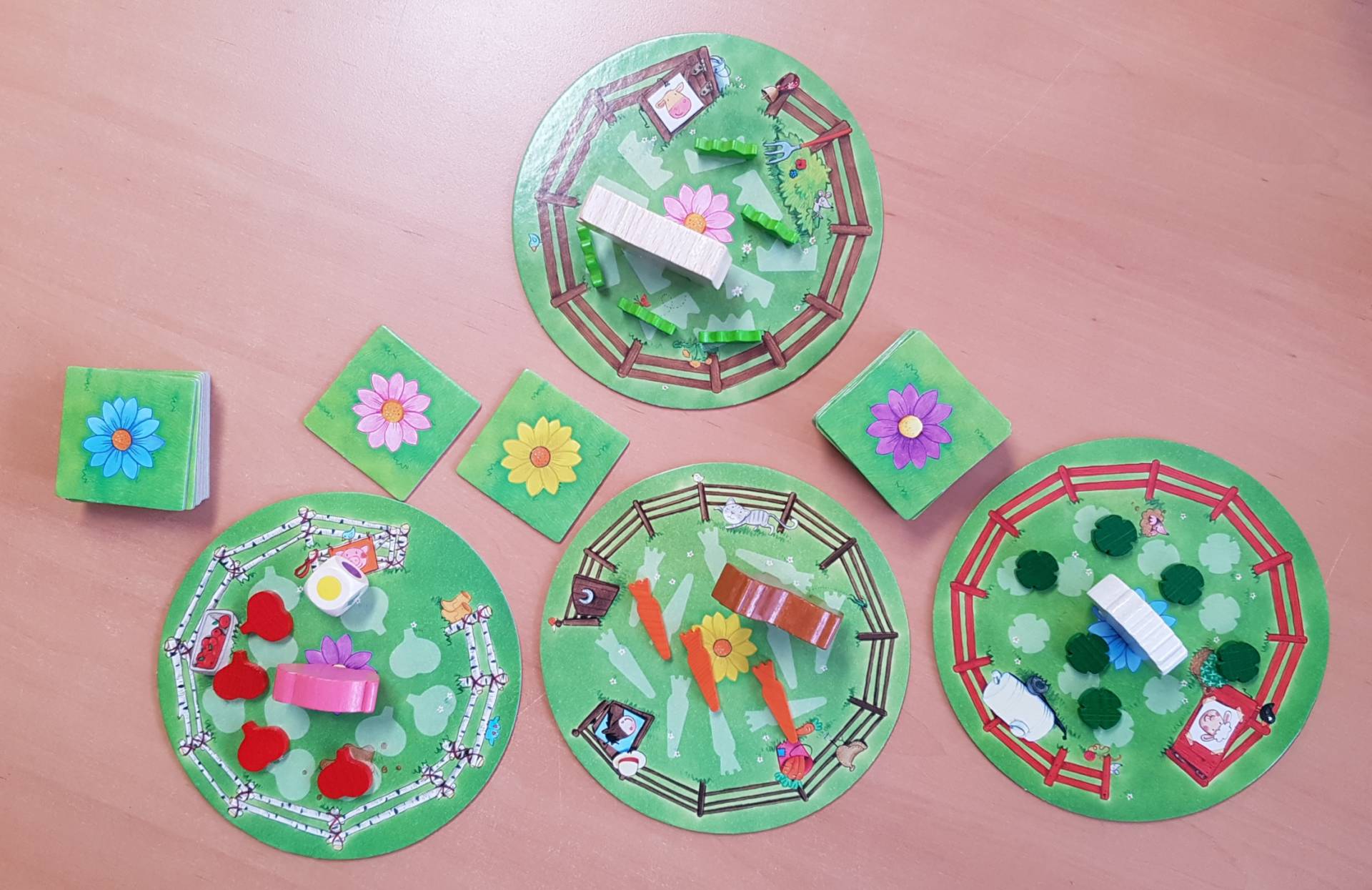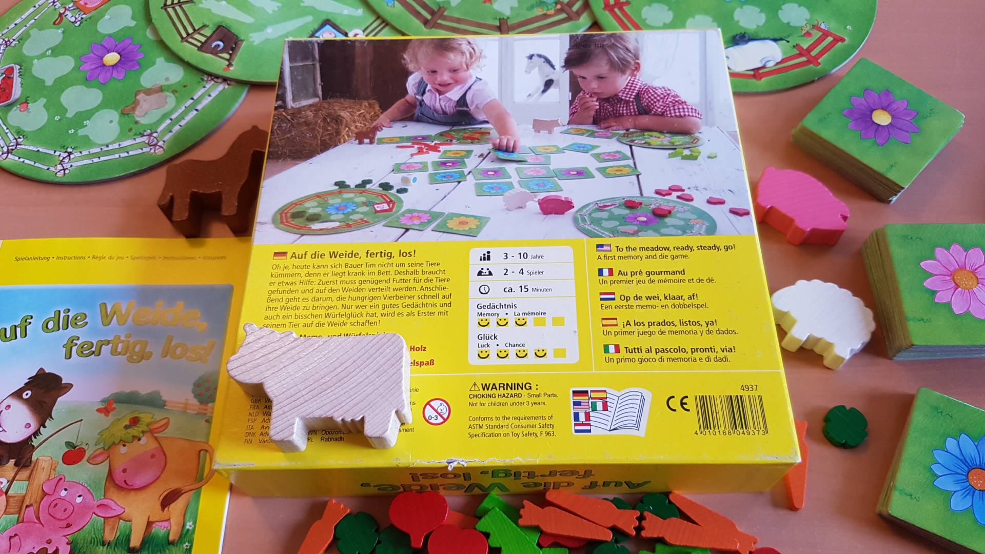 Oje, heute kann sich Bauer Tim nicht um seine Tiere kümmern, denn er liegt krank im Bett. Deshalb braucht er etwas Hilfe: Zuerst muss genügend Futter für die Tiere gefunden und auf den Weiden verteilt werden. Anschließend geht es darum, die hungrigen Vierbeiner schnell auf ihre Weide zu bringen. Nur wer ein gutes Gedächtnis und auch ein bisschen Würfelglück hat, wird es als Erster mit seinem Tier auf die Weide schaffen!