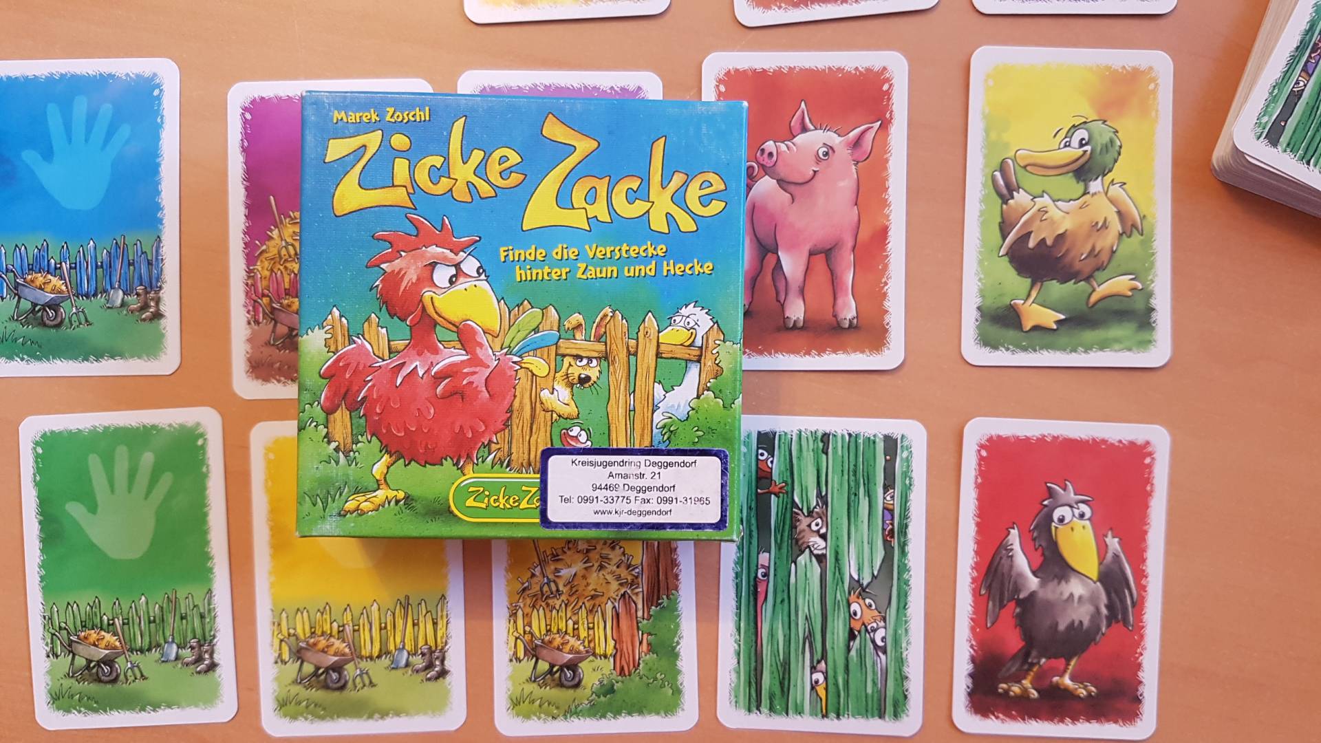 „Zicke Zacke“ ist ein rasantes Versteck- und Reaktionsspiel mit den beliebten Charakteren der Zoch-Hühnerfamilie.