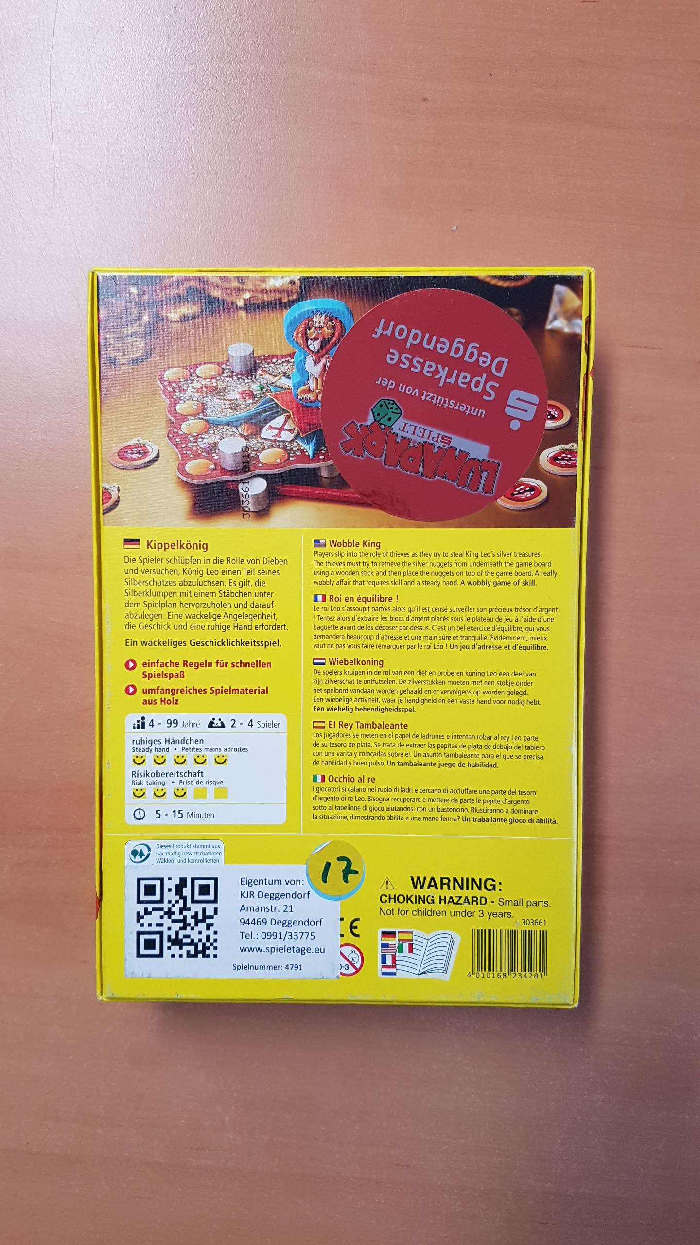 König Leo döst ab und zu ein, obwohl er eigentlich auf seinen wertvollen Silberschatz aufpassen sollte! Das ist die Gelegenheit, auf die die Spieler gewartet haben: Sie schlüpfen in die Rolle von mutigen Dieben und versuchen, die Silberklumpen mit einem Stäbchen unter dem Spielplan hervorzuholen und darauf abzulegen. Eine ganz schön wackelige Angelegenheit, für die Geschick und eine ruhige Hand nötig sind. Und natürlich darf man sich auch nicht von König Leo dabei erwischen lassen.