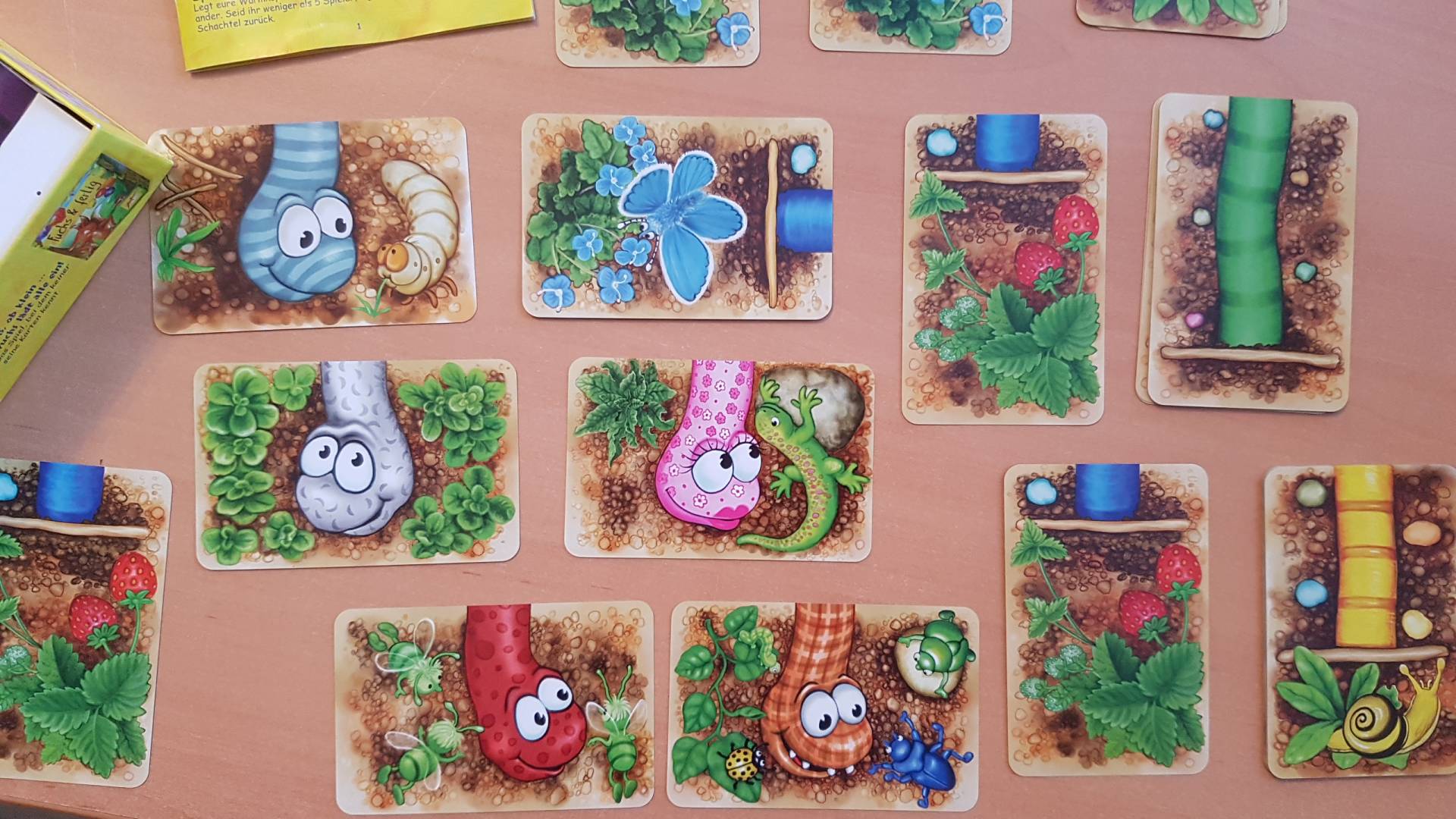 Jetzt ist auch unterwegs der Wurm drin! Im Kartenspiel können nun sogar 5 Würmer gleichzeitig den Garten umpflügen. Neu ist auch die schlaue Merkkomponente, die Kinder besonders begeistert, weil sie Erwachsenen zeigt, wo tatsächlich der Wurm drin ist.