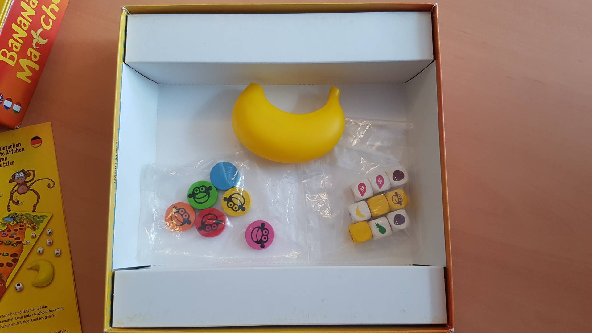Die Affen klettern! Jeder möchte die dicksten Früchte pflücken. Doch Oberaffe Banana Matcho pfeift zurück – mit der lautesten quietschenden Banane des Dschungels.