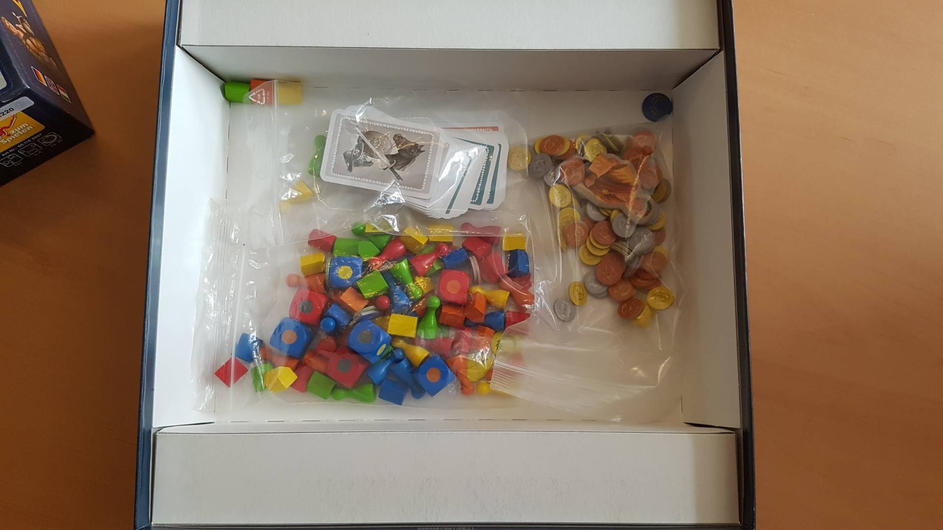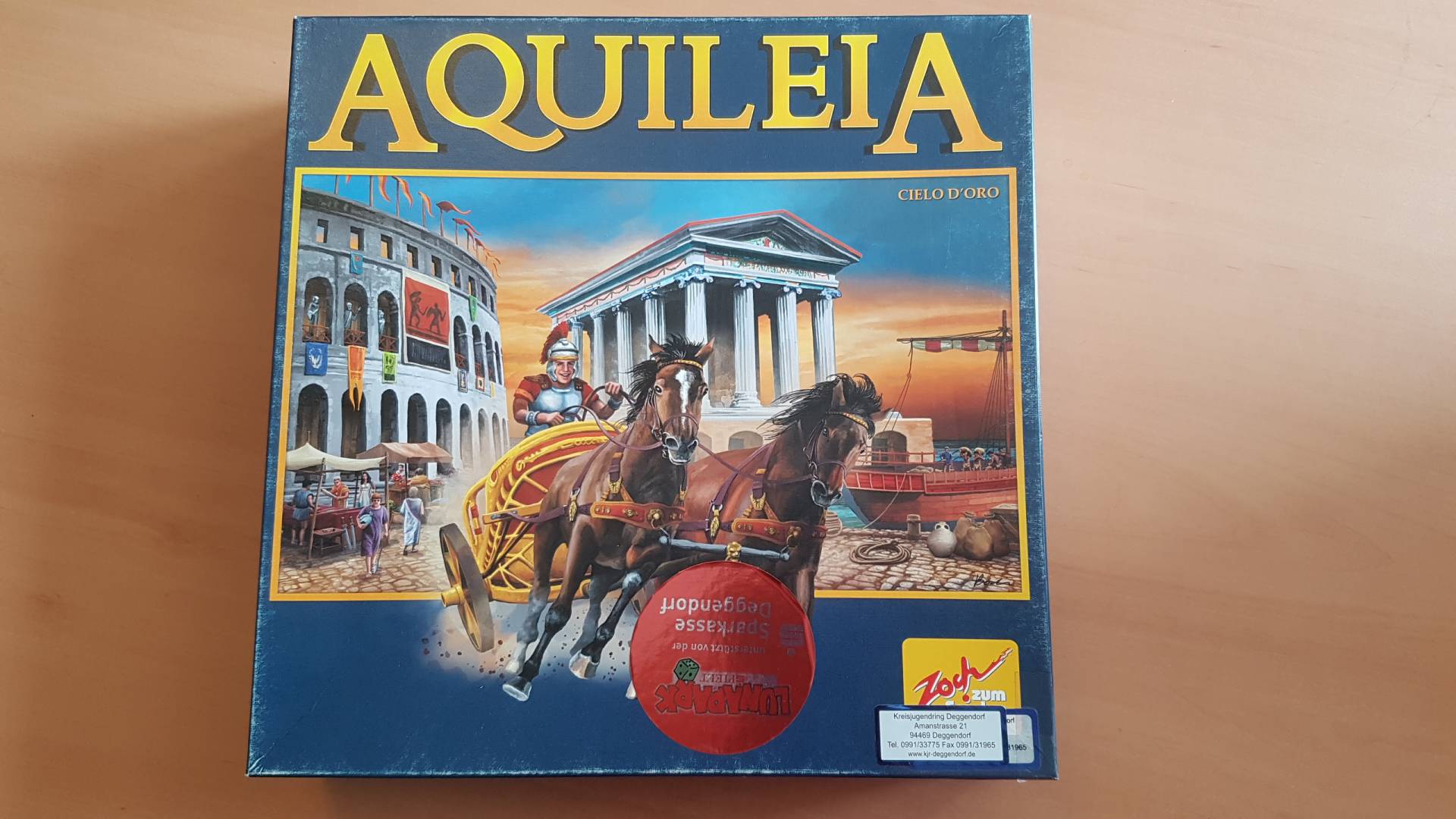 Aquileia, die zweitwichtigste Stadt des Römischen Reiches, war ursprünglich als Außenposten gegen die barbarischen Eindringlinge gegründet worden. Von seinem militärischen Ursprung stammt die eigenartige vierseitige Struktur, die durch die Hauptstraßen geteilt wird. Später entwickelte sich die Stadt zu einem wichtigen politischen und kulturellen Zentrum und einer wohlhabenden Handelsstadt, insbesondere für wertvolle Güter, dank ihres bequemen und effizienten Flusshafens. Wichtige Denkmäler wie die Gladiatorenarena, das Pferderennstadion und das berühmte Theater wurden gebaut, ebenso wie Handwerkerwerkstätten, Patriziervillen, die das architektonische Netzwerk der Stadt vervollständigten. In Aquileia wollen die Spieler durch Handel und Bauen die mächtigste Figur der Stadt werden. Jeder Spieler, der einen wohlhabenden aquileianischen Patrizier repräsentiert, besitzt eine bestimmte Anzahl von Handlangern (Bauern), die er für diese Hauptaktivitäten verwendet: Sport, Kultur, Handel und Bauen. Jede Aktivität kann Ausgaben, Einnahmen und manchmal Siegpunkte (VPs) bringen. Jede Runde beginnt mit einer Platzierungsphase, in der die Spieler abwechselnd ihre Geschischen auf Aktionsplätze und ihre Tiebreaker-Scheibe auf der Tiebreaker-Strecke platzieren. Das Platzieren des Tiebreakers ist obligatorisch; Das Platzieren von Henchmen ist es nicht (aber Sie möchten sie wahrscheinlich platzieren). Sobald jeder alle seine Token bestanden oder platziert hat, lösen die Spieler die Aktionsräume in numerischer Reihenfolge auf: Der Mercatus ermöglicht es den Spielern, Waffen, Waffen und Sklavenkarten zu kaufen, Geld durch einen Würfelwurf zu sammeln, vier blaue Würfel für die Verwendung mit der Arena und dem Stadion zu beanspruchen und eine Währung gegen eine andere einzutauschen. (Dies ist der einzige Weg, um Veränderungen vorzunehmen, und einige Aktionen erfordern bestimmte Währungen; Wenn Sie Bronze bezahlen müssen und nur Silber und Gold haben, können Sie diese Aktion nicht ausführen!) In der Arena vergleichen die Spieler die Kampfstärke, wobei diese Zahl durch die Startstärke auf dem beanspruchten Aktionsraum, den Wurf von drei Würfeln und das Spielen von Sklaven- und Waffenkarten bestimmt wird.