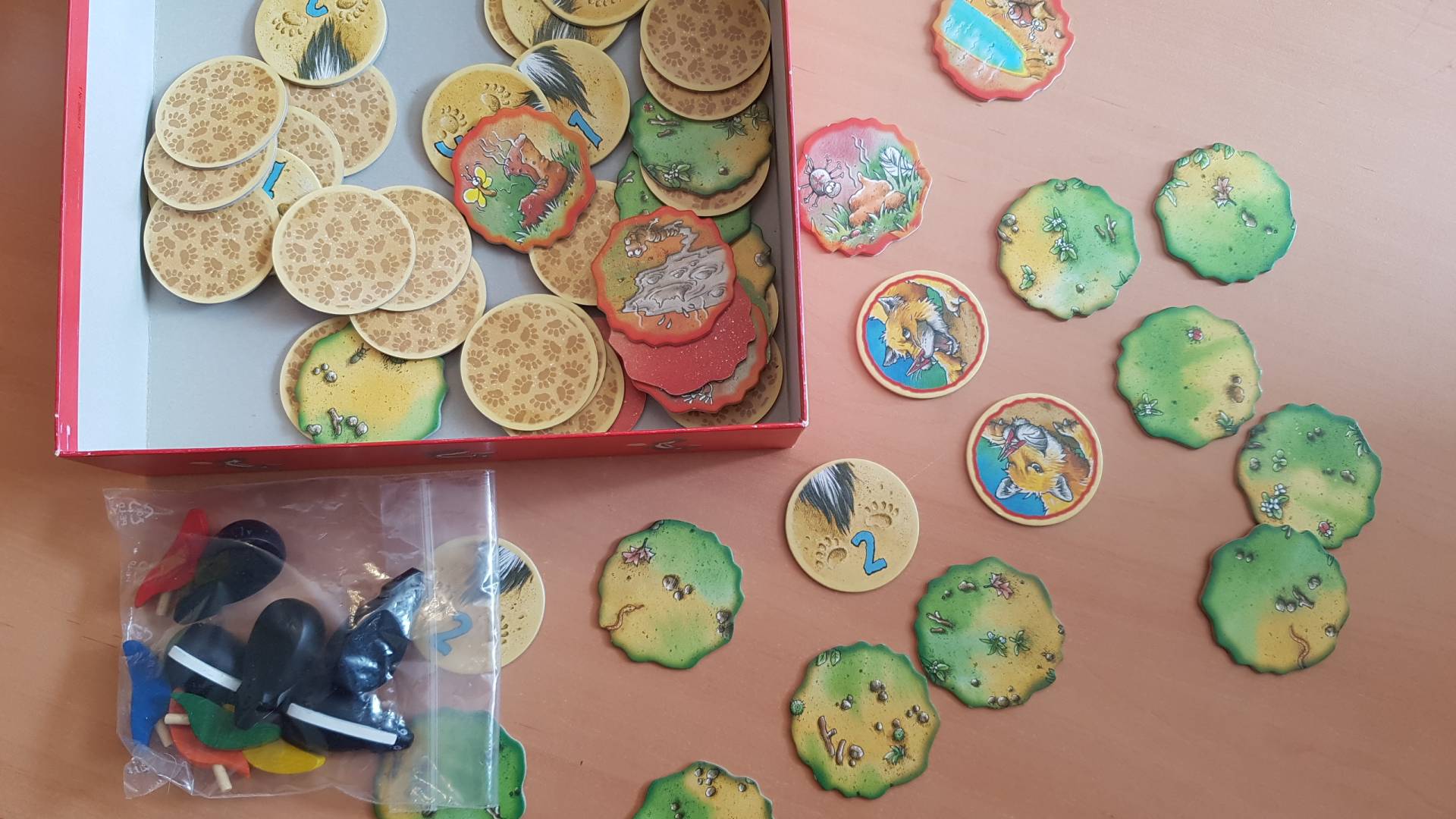 "Flinke Stinker. ist ein tierisch witziger Merkwettlauf, mit wunderschönen Spielfiguren in einer urkomischen Stinktierwelt. Die Spieler decken Kärtchen auf. Um mit ihrem Stinktier möglichst schnell voran zu kommen, suchen sie "den richtigen Weg. in Form von Stinktierspuren. Doch immer wieder taucht der fressgierige Puma auf. Der hat sich - schlau wie er ist - einfach die Nase zugeklemmt, um sich unbekümmert und nichts riechend an die Stinktiere heran zu machen. Dann heißt es erstmal allegesammelten Spurenkärtchen an die Mitspieler verschenken und sich gut merken, wo der Puma lauert. , Schlammlöcher und alter Käse stellen weitere Hindernisse dar, die man umgehen muss. Wer flink die richtigen Spuren findet und den Puma links liegen lässt, überholt auch andere Stinktiere, die mit Stinkschwaden versehen, sofort einige Felder zurück geschickt werden. Wer aber mit seinem Stinktier zuerst über das letzte Plättchen läuft, gewinnt.