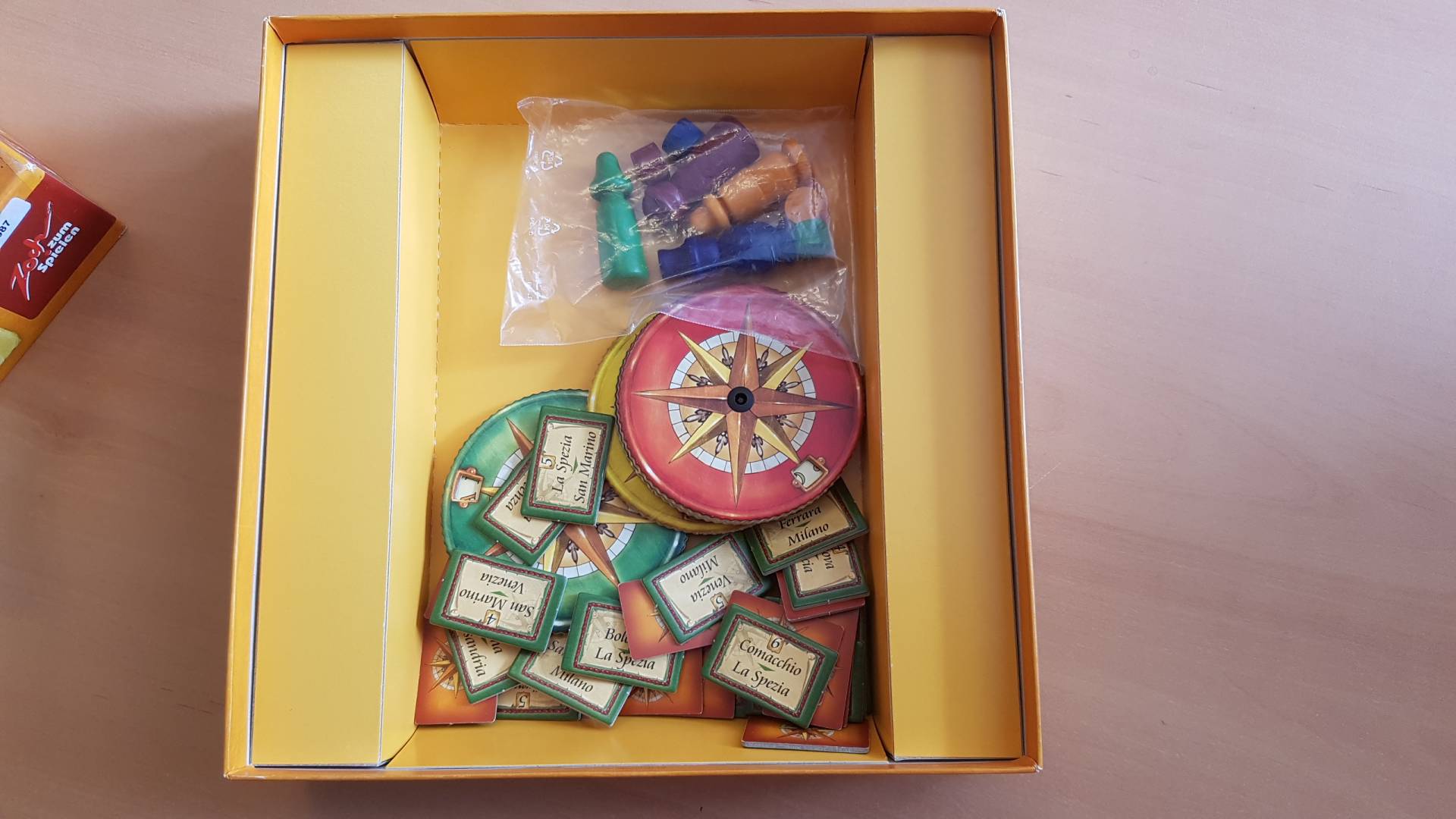"Mille Grazie. ist ein spannungsgeladenes "Räuberspiel. für die ganze Familie. Die Spieler schlüpfen abwechselnd in die Rolle von reisenden Edelleuten und diebischem Gesindel. Während sie als Adlige versuchen, unbehelligt auf norditalienischen Handelsrouten zu reisen, durchkreuzen sie als Diebe die Reiseplanungen ihrer Mitspieler aus dem Hinterhalt heraus. Dazu stellen die Ganoven auf ihrem "Überfallkompass. geheim die Straßennamen ein, an deren Wegesrändern sie ihren gut betuchten Mitspielern auflauern. Die Händler weichen auf Umwegen und mit Hilfe eines geheimen Geleitschutzes den Fallen der listigen Schurken aus." Mille Grazie. bietet alle Höhepunkte eines leichtgängigen, unterhaltsamen Familienspiels: Pläne aushecken, den Mitspielern auf die Schliche kommen - und ihnen heimlich, still und leise ein Schnippchen schlagen .