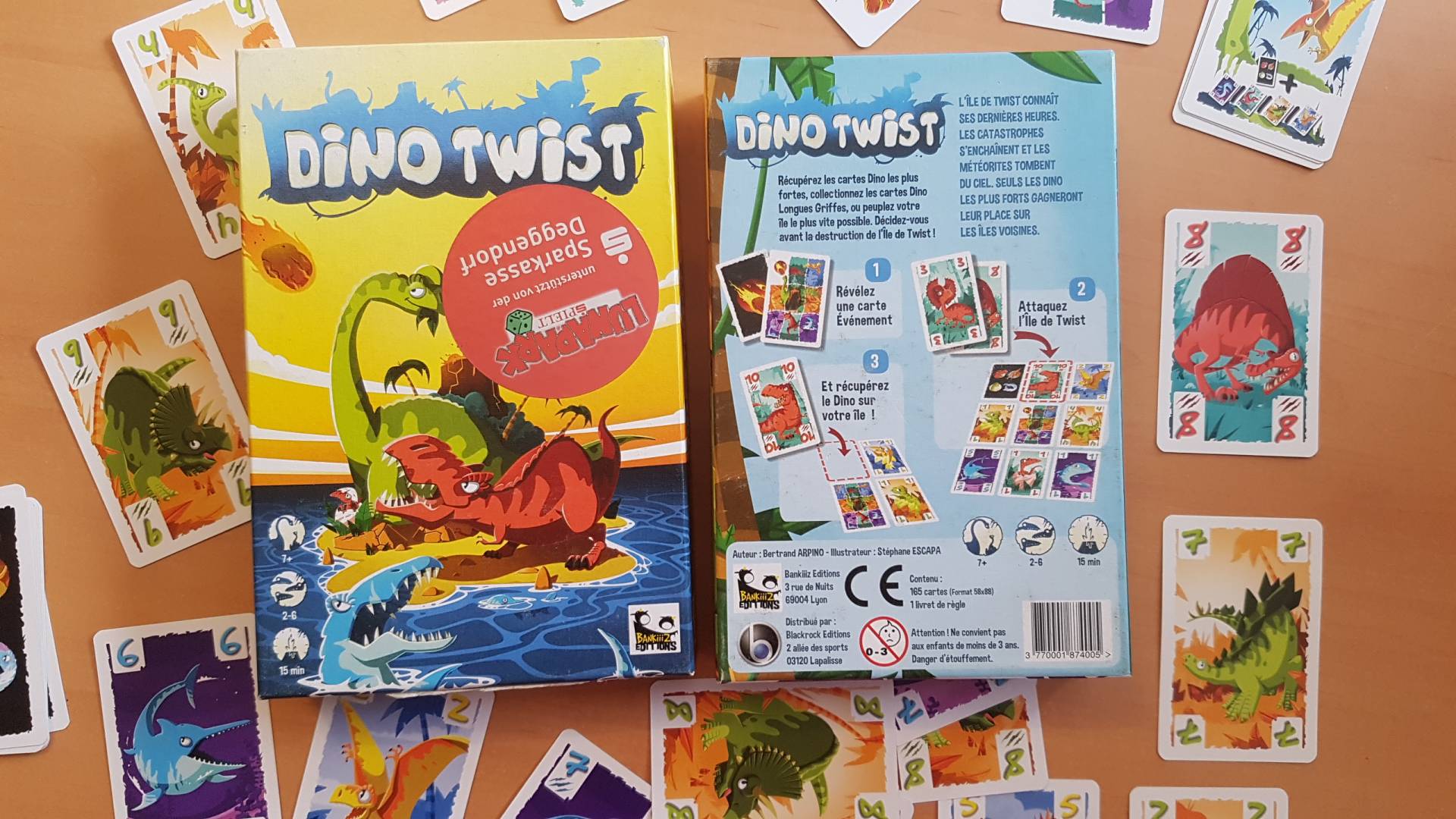 Dino Twist ist ein Familienspiel von Karten, schnell und intelligent, bei dem die Spieler die Dinos auf der Insel Twist bekämpfen und sie dann auf ihren Inseln zurückgewinnen müssen, um die meisten Punkte zu erzielen. Aber hüte dich vor den Ereignissen, die die Schlachten aufpeppen werden, !!!