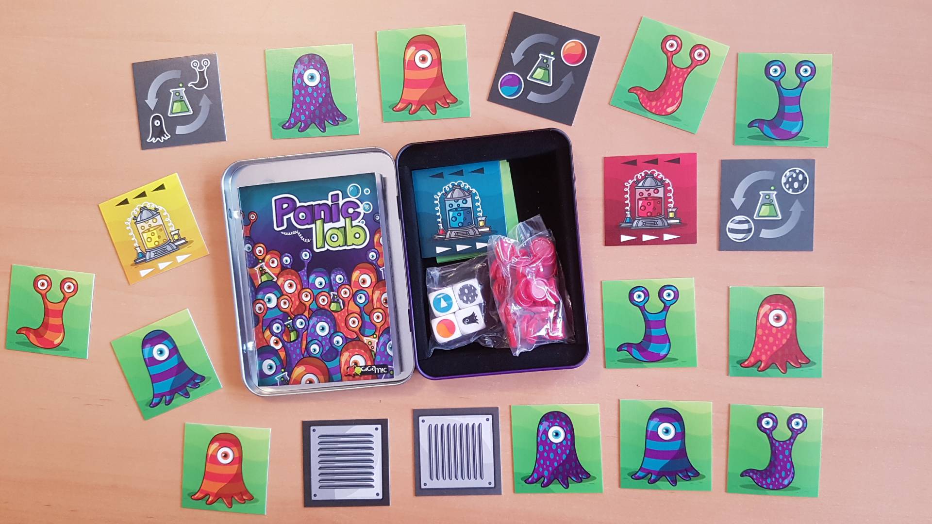 Panic Lab ist eine großartige "Gehirnverbrennung" -Herausforderung, die Ihre Kunden lieben werden. Würfel werden gewürfelt, um Ihnen zu sagen, welche Amöben Sie suchen und aus welchem Labor sie entkommen sind. Das klingt einfach, aber sie mutieren und entweichen durch die Lüftungsschlitze. Kannst du die richtige Amöbe vor deinen Gegnern abgleichen? Panic Lab ist eines unserer meistverkauften Spiele für Menschen mit kühlen Köpfen, scharfen Augen und schnellen Händen.