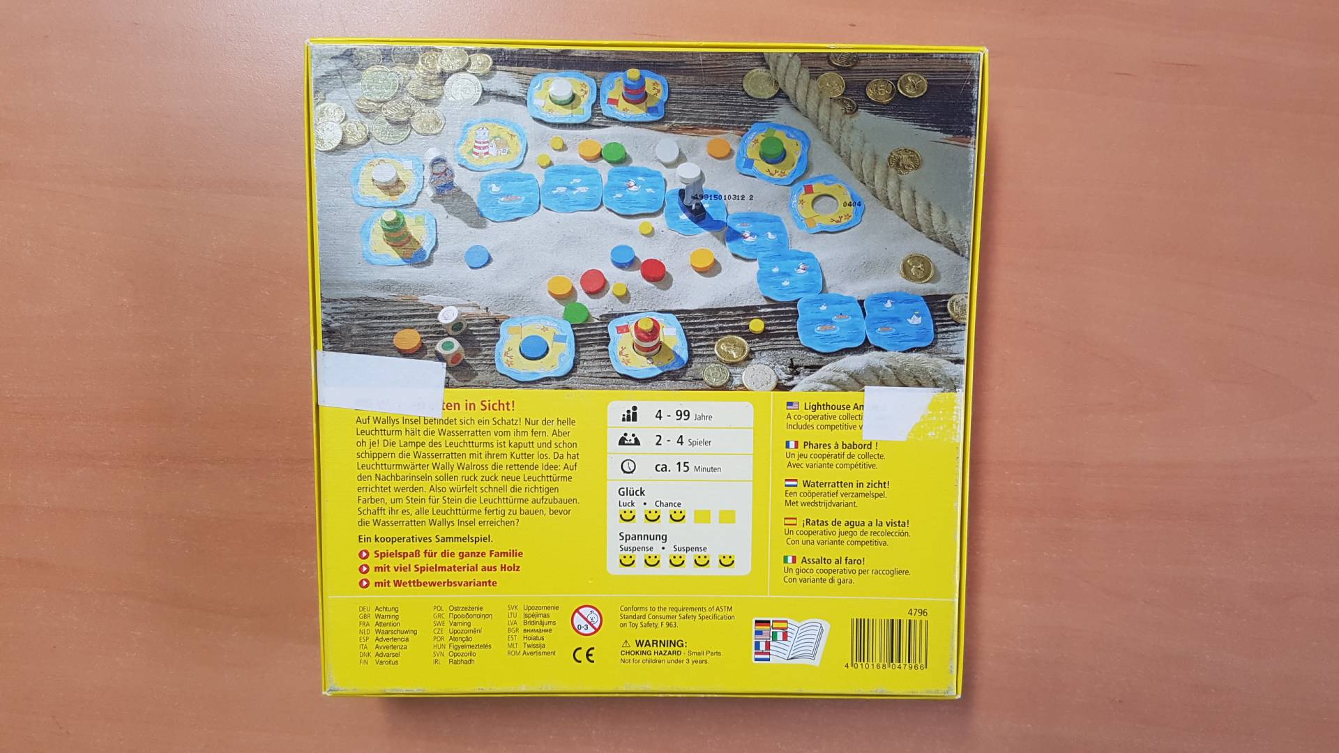 Auf Wallys Insel befindet sich ein Schatz! Nur der helle Leuchtturm hält die Wasserratten von ihm fern. Aber oh je! Die Lampe des Leuchtturms ist kaputt und schon schippern die Wasserratten mit ihrem Kutter los. Da hat Leuchtturmwärter Wally Walross die rettende Idee: Auf den Nachbarinseln sollen ruck, zuck neue Leuchttürme errichtet werden. Also würfelt schnell die richtigen Farben, um Stein für Stein die Leuchttürme aufzubauen. Schafft ihr es, alle Leuchttürme fertig zu bauen, bevor die Wasserratten Wallys Insel erreichen?