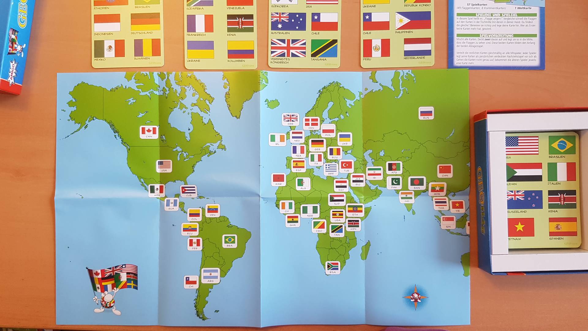 Hier heißt es Flagge zeigen und den eigenen Kartenstapel mit Flaggenkarten schneller abbauen als die anderen. Denn alle spielen gleichzeitig und nur wer am Schnellsten reagiert und dabei noch die richtige Flagge zur passenden Flagge legt, wird seine Karten als Erster los.