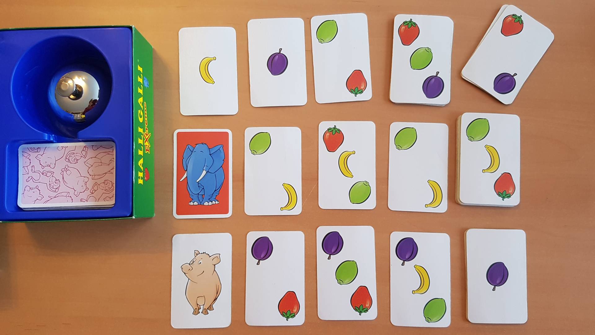 Im Urwald geht es drunter und drüber: Elefant, Affe und Schwein sind auf der Suche nach ihren Lieblingsfrüchten. Haben sich Tier und passende Leckerei gefunden oder liegen zwei identische Früchtekarten auf dem Tisch, heißt es schnellstens auf die Glocke hauen. Aber Vorsicht – das Schwein reicht auch allein!