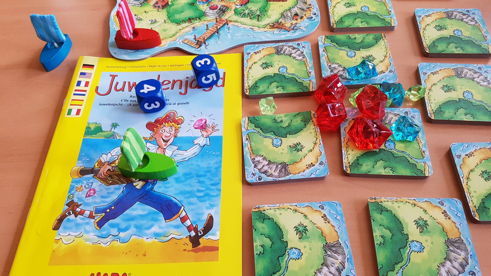 Auf zur großen Juwelenjagd!¨ rufen alle Nachwuchspiraten, die sich einmal im Jahr zur großen Piratenprüfung treffen. Doch um diese zu bestehen, müssen sie erst die richtige Insel finden und sich dann so schnell wie möglich ein Piratenschiff schnappen. Wer die Zahlen des Zahlenwürfels richtig addiert und am schnellsten die passende Anzahl an Schatzlöchern ertastet, ergattert die wertvollsten Edelsteine und wird am Ende der Meisterpirat.