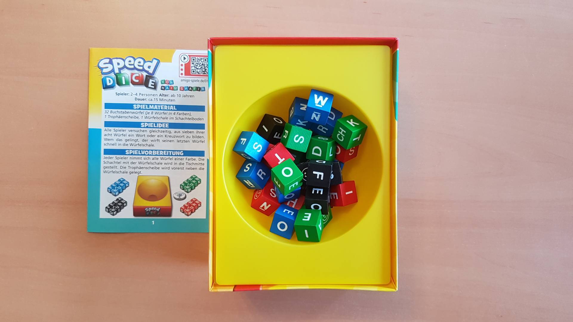 Die Würfel sind schnell gefallen. Aber aus ihnen sinnvolle Wörter zu kreieren, das dauert schon etwas länger. Bei Speed Dice wird sich zeigen, wer der flinkere Buchstabenkombinierer ist, wer das glücklichere Händchen beim Werfen, oder wer als Erster eine Eingebung hat! Schließlich geht es darum, seine Würfel loszuwerden! Aber wird es dadurch einfacher?