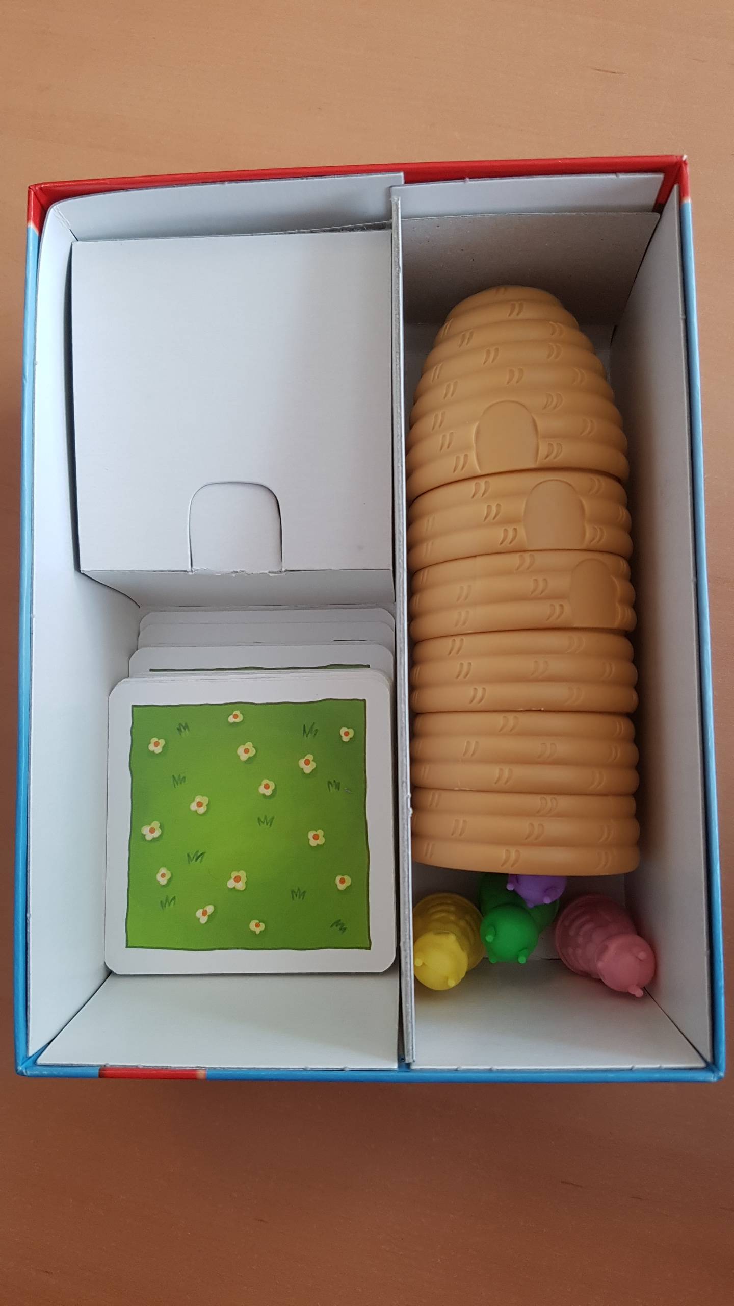 Die Karten werden gemischt und verdeckt in die Mitte gelegt. Die sechs Bienchen werden im Kreis herum aufgestellt und jede mit einem Bienenkorb verdeckt. Dann geht es los und der erste Spieler dreht eine Karte um. Ist eine Biene zu sehen, muss der Spieler nun den Bienenkorb finden, unter dem sich diese Biene verbirgt. Wo hat sie sich nur versteckt? Wer auf Anhieb das richtige Bienchen findet, darf den Bienenkorb mit der Biene darunter vor sich abstellen. Hat man unter den falschen Bienenkorb geschaut, ist der nächste Spieler an der Reihe und dreht eine neue Karte um.