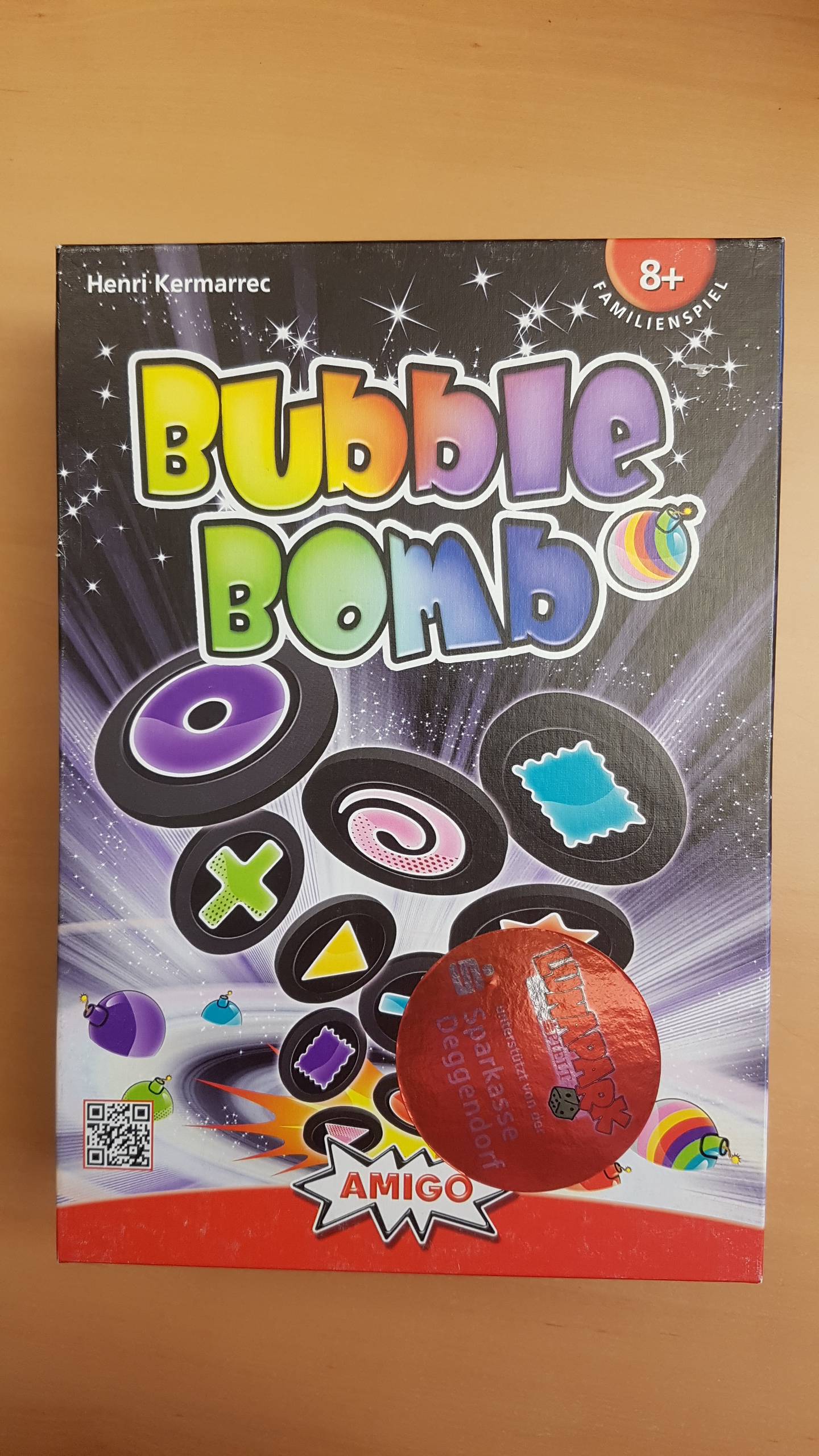 Bubble Bomb ist ein rasantes und schnell erlernbares Spiel, bei dem alle Spieler gleichzeitig versuchen, sieben Chips zu sammeln, die einem der neun ausliegenden Bomben-Plättchen entsprechen. Mal wird nach gleichen Symbolen oder Farben gesucht, dann wieder nach komplett unterschiedlichen. Wer das am schnellsten schafft, punktet!