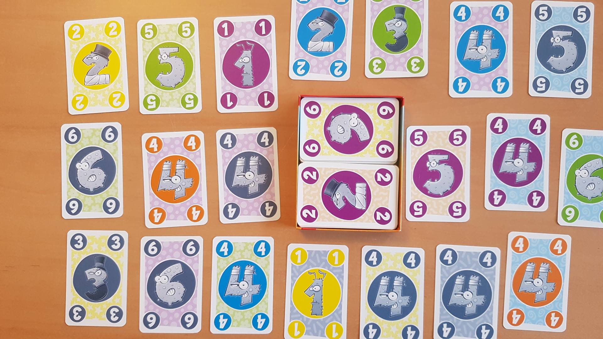 Geschickt ausgespielt ist schon fast gewonnen! Spielt eure Handkarten in die Kartenreihen. Schafft ihr es vier gleiche Eigenschaften wie Hintergrundfarbe, Kreisfarbe oder Zahl in eine Kartenreihe zubekommen, erhaltet ihr die gesamte Kartenreihe. Sieger ist, wer am Ende die meisten Karten abgezockt hat.